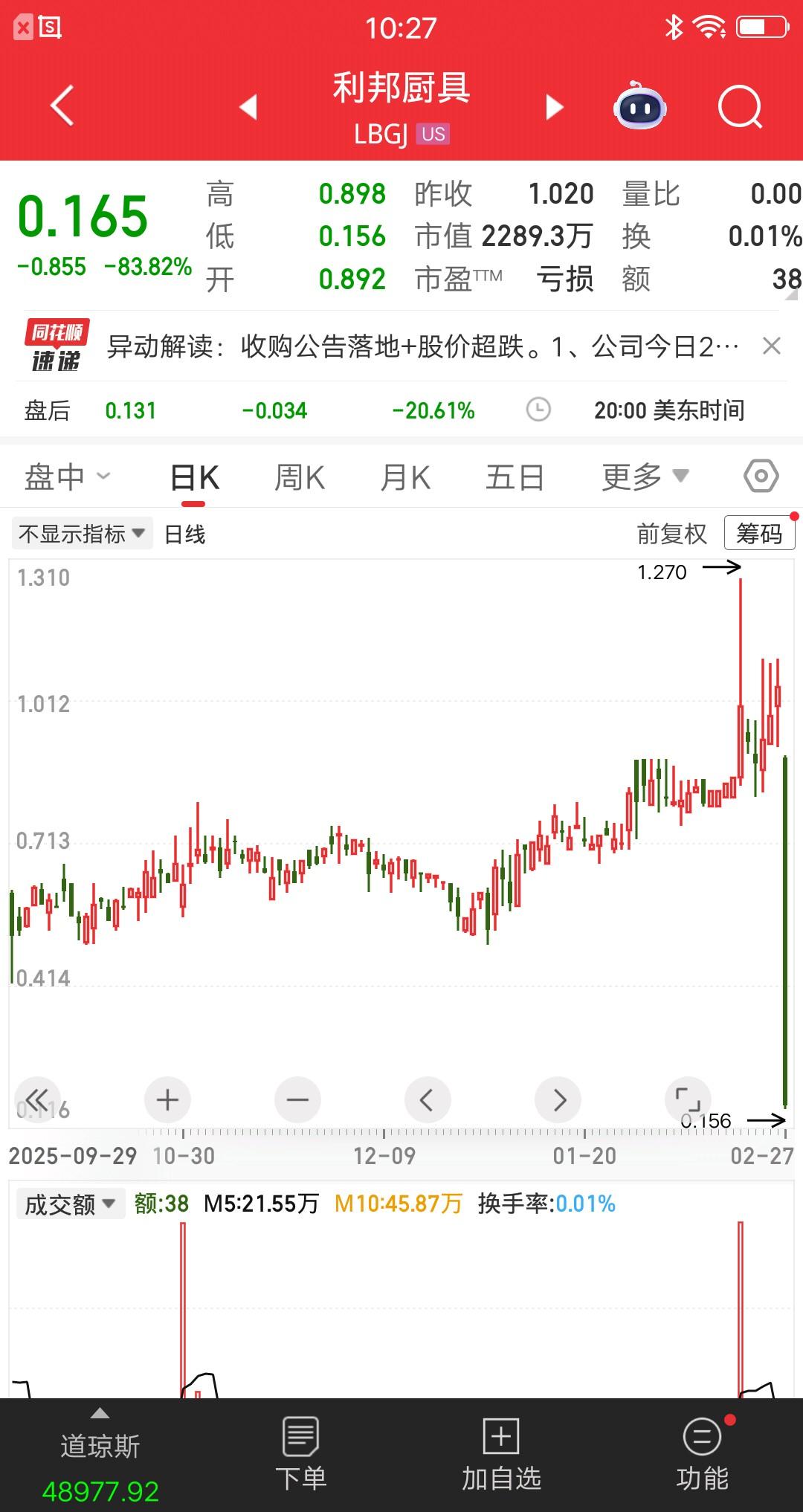 美股今天最惨的票诞生了,爆仓大阴线从天而降,防不胜防呀。昨夜美股,跌的那叫一个稀里哗啦,三大指数集体跳水。道琼斯跌1.05%纳指跌0.92%标普跌0.43%。科技巨头跌的更惨,英伟达跌4.16%特斯拉跌1.49%等。 有一只票跌的巨惨,该票低开低走,股价直线杀跌,还多次触发停牌。可是复牌后,依然挡不住杀跌,收盘跌幅83.82%。高位买入的人血本无归,现在估计想死的心都有了。 该票是一只仙股,市值小的可怜,主力随意拿捏股价,想涨就涨想跌就跌。 从这只票上,我们可以看到,T加0和不设涨跌幅限制,这种规则的弊端。碰上一次,账户直接清零。 所以咱们大A现在的规则,就是最好的,千万别和美股一样。不然散户的下场一定是,辛苦交易若干年,一把亏到解放前。 大家觉得呢?