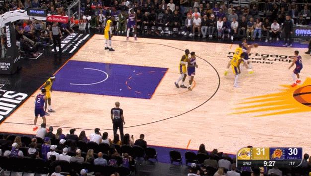 艾顿快把斯玛特气死了! 一个掩护,人不动了! 湖人的防守策略是掩护换人,虽然这