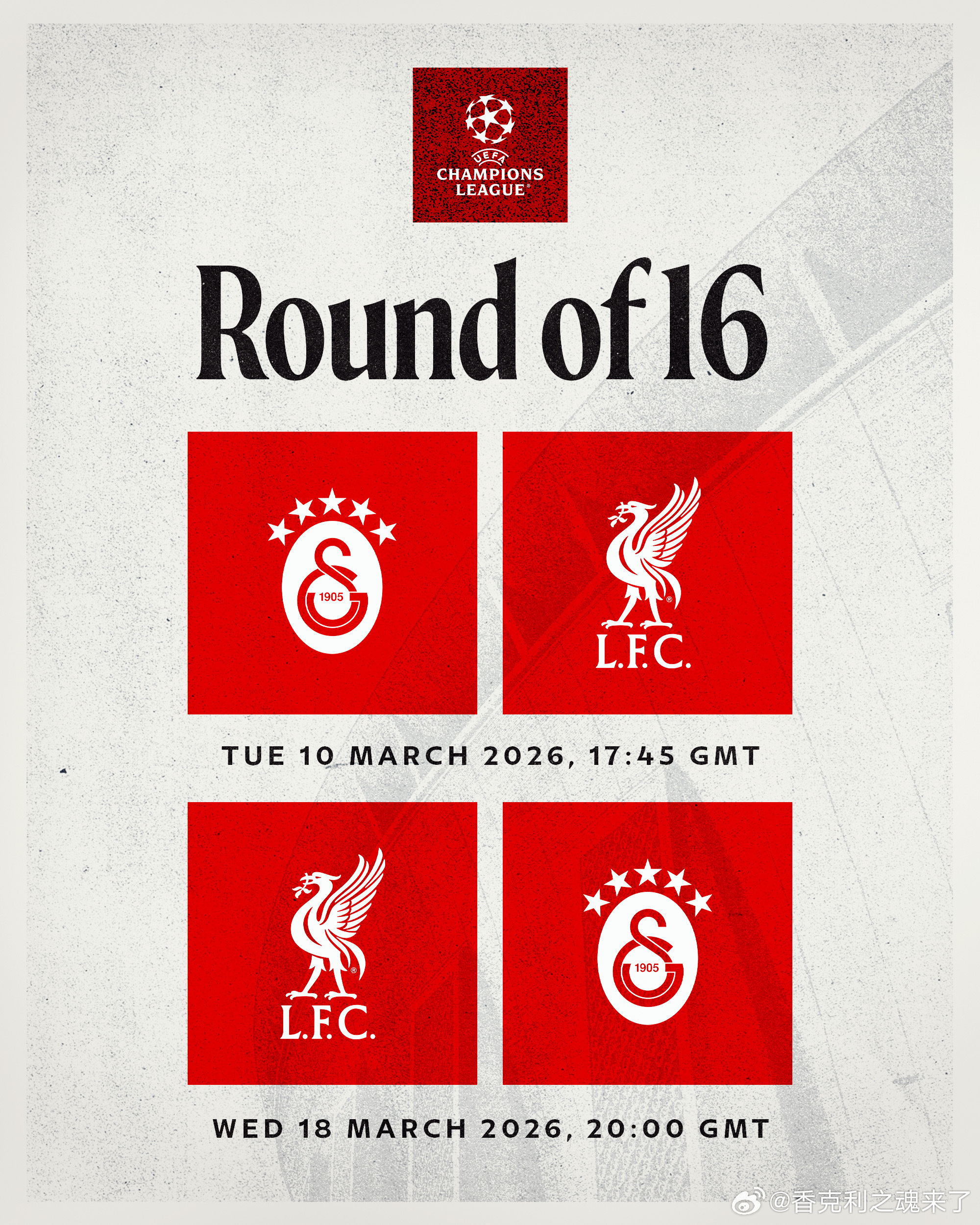 利物浦对阵加拉塔萨雷的欧冠16强两回合比赛日期已确认,其中包含一场早场开球。