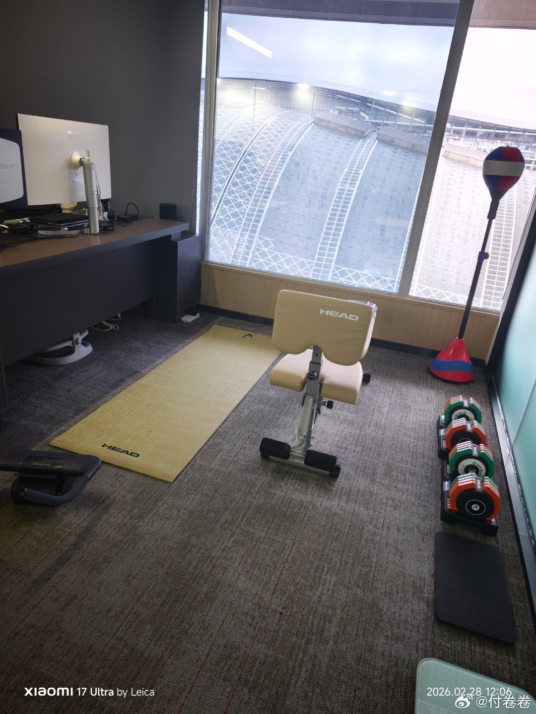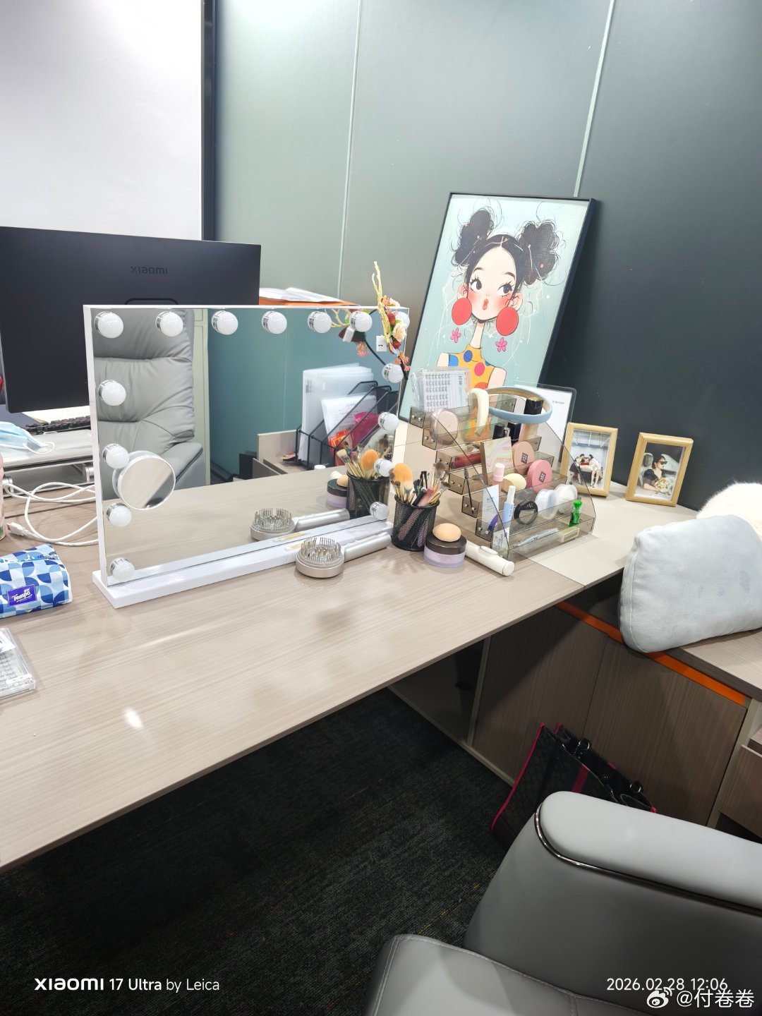 我在办公室弄了个简易健身房之后,又在办公室搞了一个化妆间,然后我朋友要是来公司,我就会先带她们健个身,再给她们化个妆……然后,她们最近说不想来了,比上班还累我的日常plog付卷卷