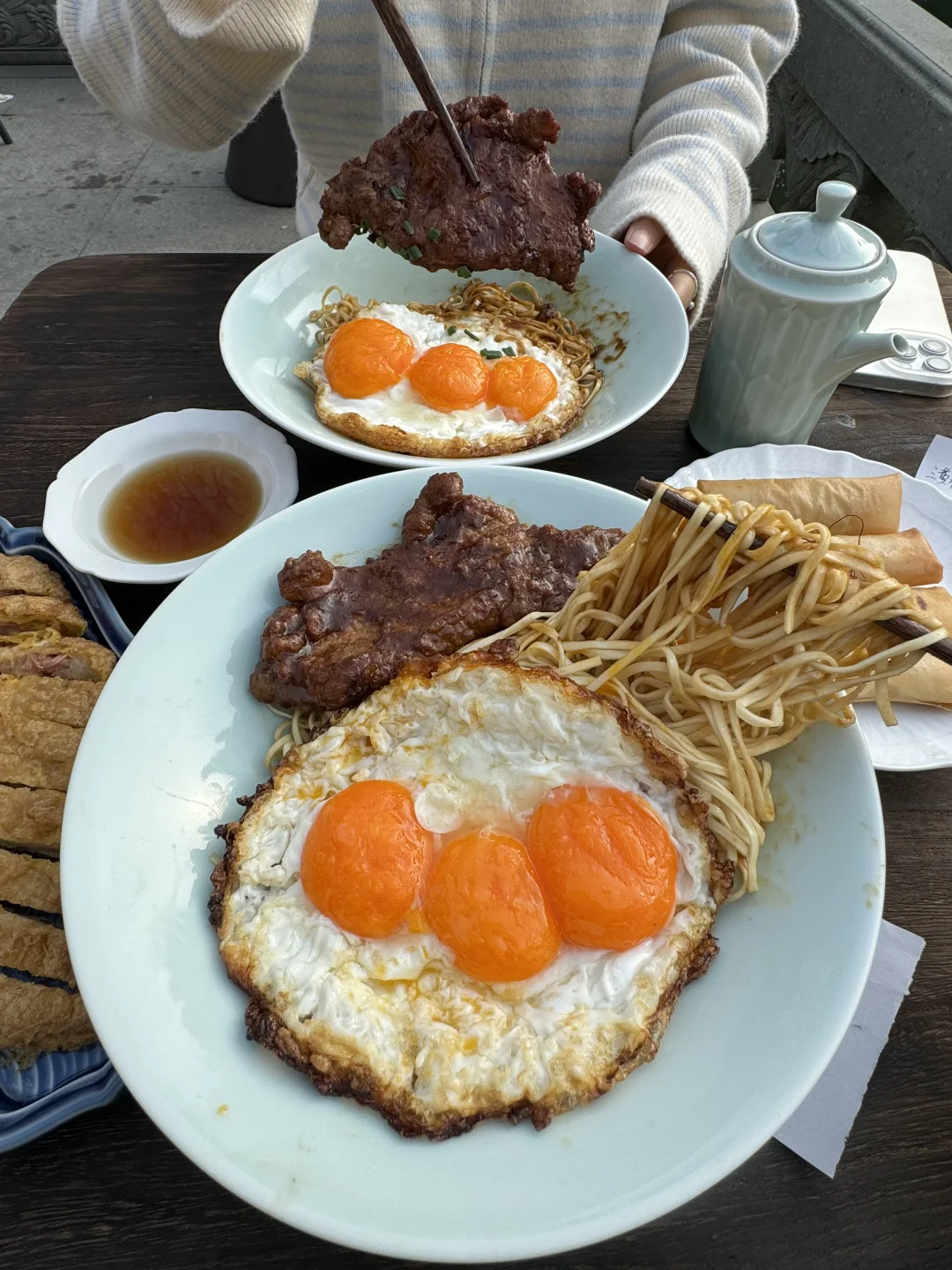 杭州土著朋友推荐的美食!! 下高铁直奔这里🚄真的没失望!!! 好好吃的本帮面🤤就在杭州雷峰塔附近~ - 主打拌川!纯手工面+明档现炒!烟火气满满!香菜牛肉、番茄鸡蛋、虾仁爆鳝、腰花猪肝大肠好多口味!!淋上浇头真的好香!!再来一份三黄溏心蛋绝了吧🤤 还有小笼包、春卷、猪排、各种点心糖水也都不错吃 !盲点也不踩雷~ - 📍同兴春·杭州面馆拌川(西湖店)