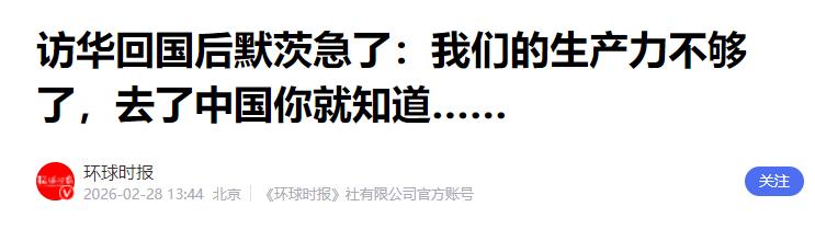 默茨访华结束后在德国演讲,语气激动持续咆哮,台下安静无声! 2月27日,德国总理默茨刚结束他上任以来的首次访华行程,就马不停蹄地回到德国,召开了一场公开演讲。本来大家都以为,他会重点讲讲访华的成果,说说中德合作的机遇,可谁也没想到,这场演讲全程充满了激动的情绪,默茨甚至几乎是咆哮着完成了发言,而台下的反应却异常冷淡,安静得连掉根针都听得见。 先说说默茨这次访华的情况。2月25日到26日,默茨应邀对中国进行正式访问,他也是农历马年首位到访中国的外国领导人。这次访华,他带了一支规格很高的商业代表团,里面有来自德国汽车、化工、生物制药等优势领域的30家头部企业高管,看得出来,德国方面非常重视和中国的合作。 访华期间,默茨去了北京和杭州,参观了不少企业。在北京,他试乘了新一代梅赛德斯-奔驰S级轿车,体验了中德合作开发的驾驶辅助系统,还由衷赞叹这是未来的出行技术。 在杭州,他去了宇树科技,看到了春晚同款的机器人,那些机器人能跳舞、能写“福”字,引得默茨频频鼓掌,随访的德国商界代表也都不停拍照记录。除此之外,他还走访了西门子能源在杭州的公司,实地了解德资企业在中国的发展情况。 访问结束时,默茨还在社交媒体上用中文写道,愿马年成为德中合作与发展之年,看得出来,这次中国之行,他确实看到了很多不一样的东西。 可就是这次让他印象深刻的中国之行,似乎给了他很大的刺激。回到德国后的演讲会上,默茨一上台就没了访华时的温和,情绪变得异常激动。 从现场视频能清楚看到,他说话的声音很大,语气也很急促,几乎是咆哮着对着台下的人说:“先生们,女士们,我们德国已经不再足够有生产力了。” 他接着抱怨,现在德国人总说自己已经做了很多工作,但只要从中国回来,就能看得更清楚,现在大家追求的工作与生活平衡,还有推行的四天工作制,根本无法维持德国的长期繁荣,所有人都必须付出更多努力才行。 这段话,他说得又急又有力,能明显感觉到他的着急和不满,看得出来,中国之行让他真切感受到了德国和中国在生产力上的差距。 可能默茨自己也没想到,他如此激动的演讲,台下却没有任何回应。正常来说,总理发表这样的演讲,要么会有掌声,要么会有不同意见的争论,可当天的现场,却是一片死寂。 台下坐着的有德国的官员、企业代表,还有不少民众,大家都安安静静地坐着,没有人鼓掌,没有人说话,甚至连小声议论都没有,安静得可怕,真的能做到掉根针都听得见。 其实,默茨说的这些问题,德国人心里都清楚。这些年,德国的经济一直不太好,2023年和2024年连续两年陷入衰退,2025年才勉强实现0.2%的小幅增长,复苏的基础一点都不牢固。 德国的制造业也一直在下滑,2025年工业企业破产数量超过1600家,创了近12年的新高,制造业岗位也减少了不少,“去工业化”的趋势越来越明显。 而默茨提到的四天工作制,在德国也一直有争议。虽然有部分企业试点后觉得不错,能提高员工幸福感,但也有很多企业遇到了麻烦,比如一些玻璃窗制造商,因为订单波动,根本无法维持四天工作制,最后只能改回五天。 很多经济学家也说,四天工作制不适合所有行业,尤其是制造业这种需要高强度生产的领域,会影响竞争力,降低生产力。 默茨这次访华,看到了中国的发展速度和中国人的工作劲头,对比之下,再看看德国的现状,心里肯定很着急。 他想通过咆哮式的演讲,唤醒台下的人,让大家意识到问题的严重性,不要再安于现状,要多付出努力,才能让德国经济重新好起来。 可台下的人之所以保持沉默,并不是不认同默茨的话,反而正是因为认同,才不知道该说什么。大家都知道德国经济面临的困境,也知道四天工作制和过度追求工作生活平衡,确实影响了生产力,可谁也不想放弃现有的舒适生活,不想多付出辛苦。一方面是国家的发展,一方面是自己的舒适,大家陷入了两难,只能选择沉默。 这次演讲,看似只是默茨的一次情绪宣泄,其实也反映出了德国当前面临的真实困境。作为欧洲最大的经济体,德国曾经是“欧洲经济稳定器”,可现在,它不仅面临着外部的冲击,还有内部的结构性矛盾,基础设施老化、劳动力短缺、生产力下降,这些问题都让德国的发展举步维艰。 默茨的咆哮,是对现状的焦虑,也是对未来的担忧。他希望通过这次演讲,推动德国人改变,推动德国进行改革,可台下的沉默,却说明改革的阻力不小。毕竟,要让大家放弃现有的舒适,多付出努力,并不是一件容易的事。
