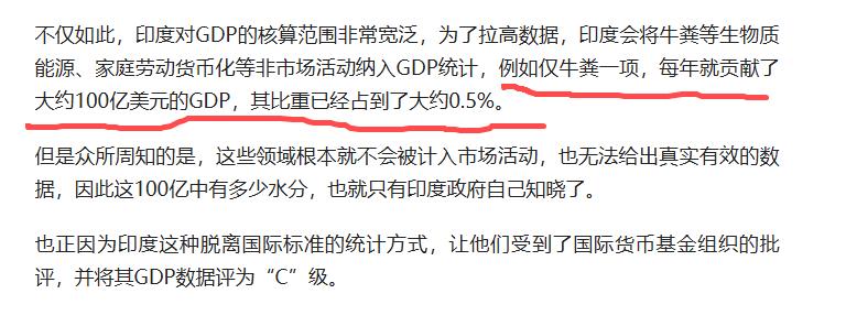 三哥鸡的屁缩水10万亿…… 印度GDP数据为何会缩水超10万亿 这水份得有多大啊。[石化]感觉他把整个印度洋的水都掺进去了。 那不是一个次大陆,而是一块大海绵啊。 而且更搞笑的是,我一直以为把牛粪计入GDP只是我们嘲笑他们的一个比喻而已。 结果,我还是太年轻了。 他们真的那么干 ,而且估计价值100亿美元。 啥牛粪,这么值钱?[恐惧] 想起当年矮大紧吹印度现在想起来就觉得好笑。 点右上角关注我,我们一起去看这个魔幻的世界
