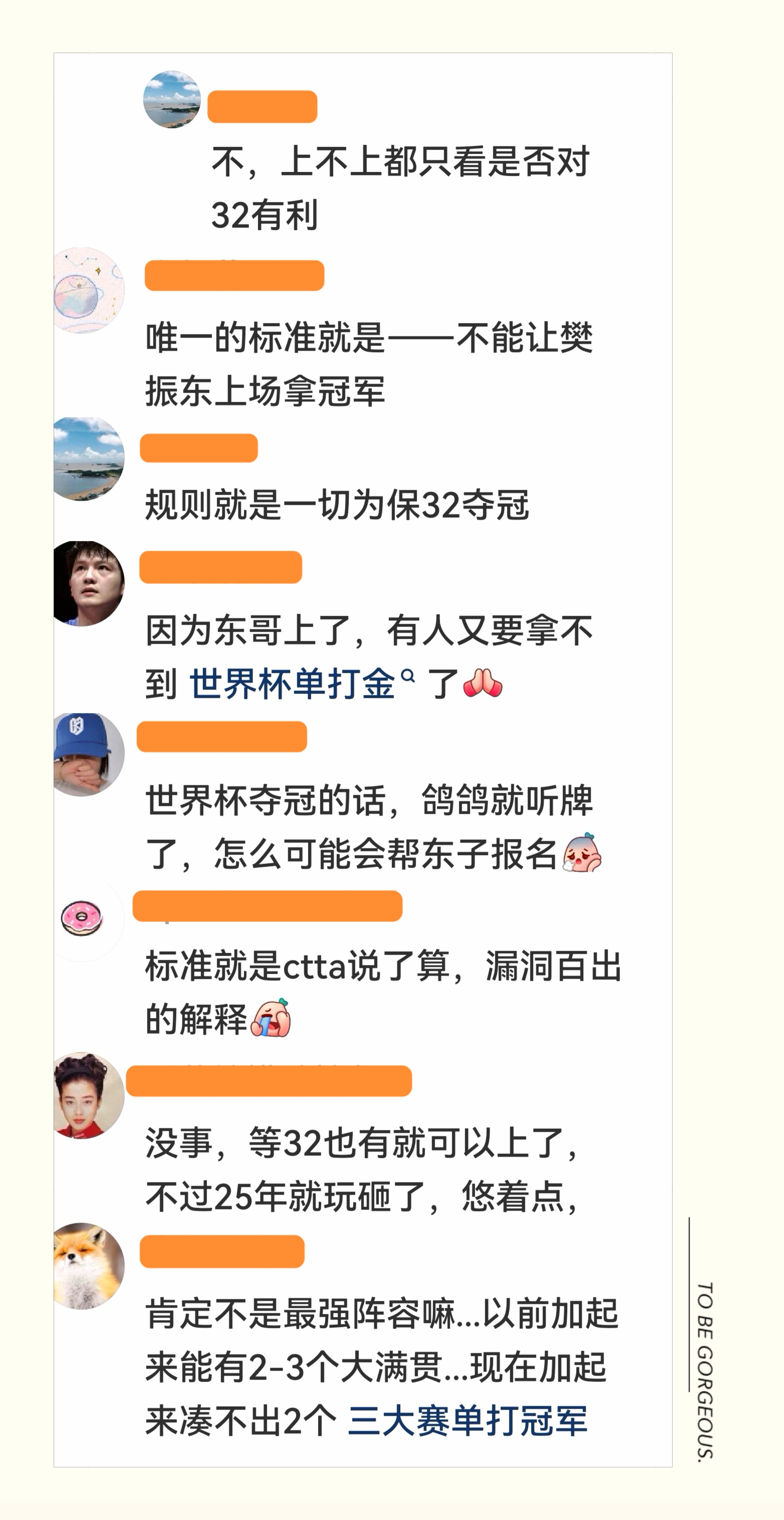 既然"世界排名不是唯一标准",那么乒协选拔的标准到底是什么?国家队如果有提名权,为什么不用在"实力最强者"身上?如果世界杯这样的重要国际赛事,"实力最强者"都可以没有名额,那竞技体育的核心到底是实力还是别的东西? 澳门世界杯中国队参赛名单