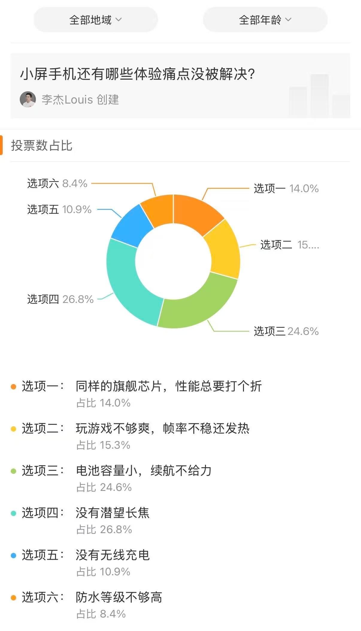 一加 15T 已经开始预热了Louis 前几天发了一条小屏手机体验痛点的投票,没想到大家对「小屏+潜望长焦」的呼声这么高,甚至超过了续航