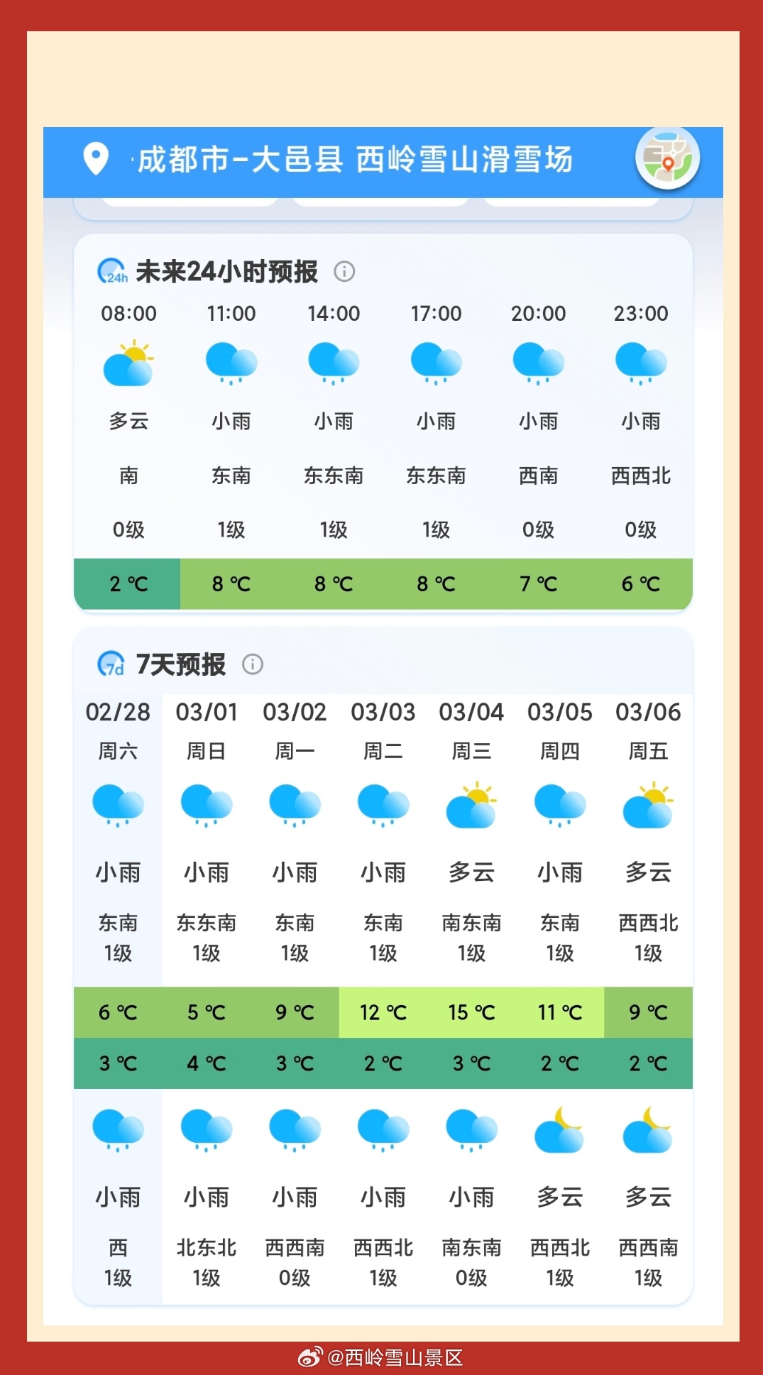 西岭雪山3月3日(元宵节)气象预报#西岭雪山##西岭雪山天气#