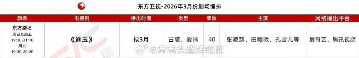 逐玉上星东方卫视了,爱奇艺+腾讯+🍅古偶这个待遇,排面有点可以哦