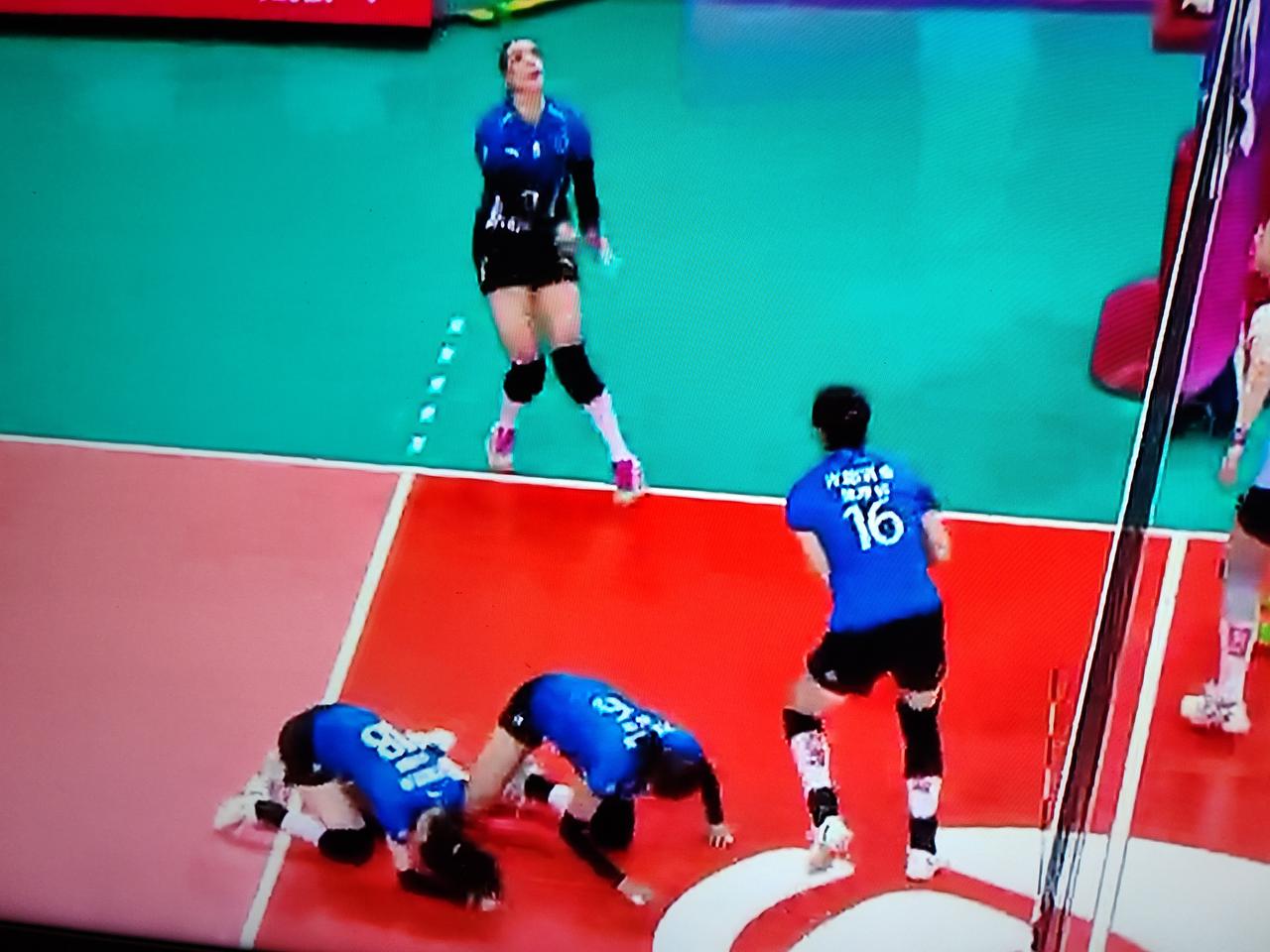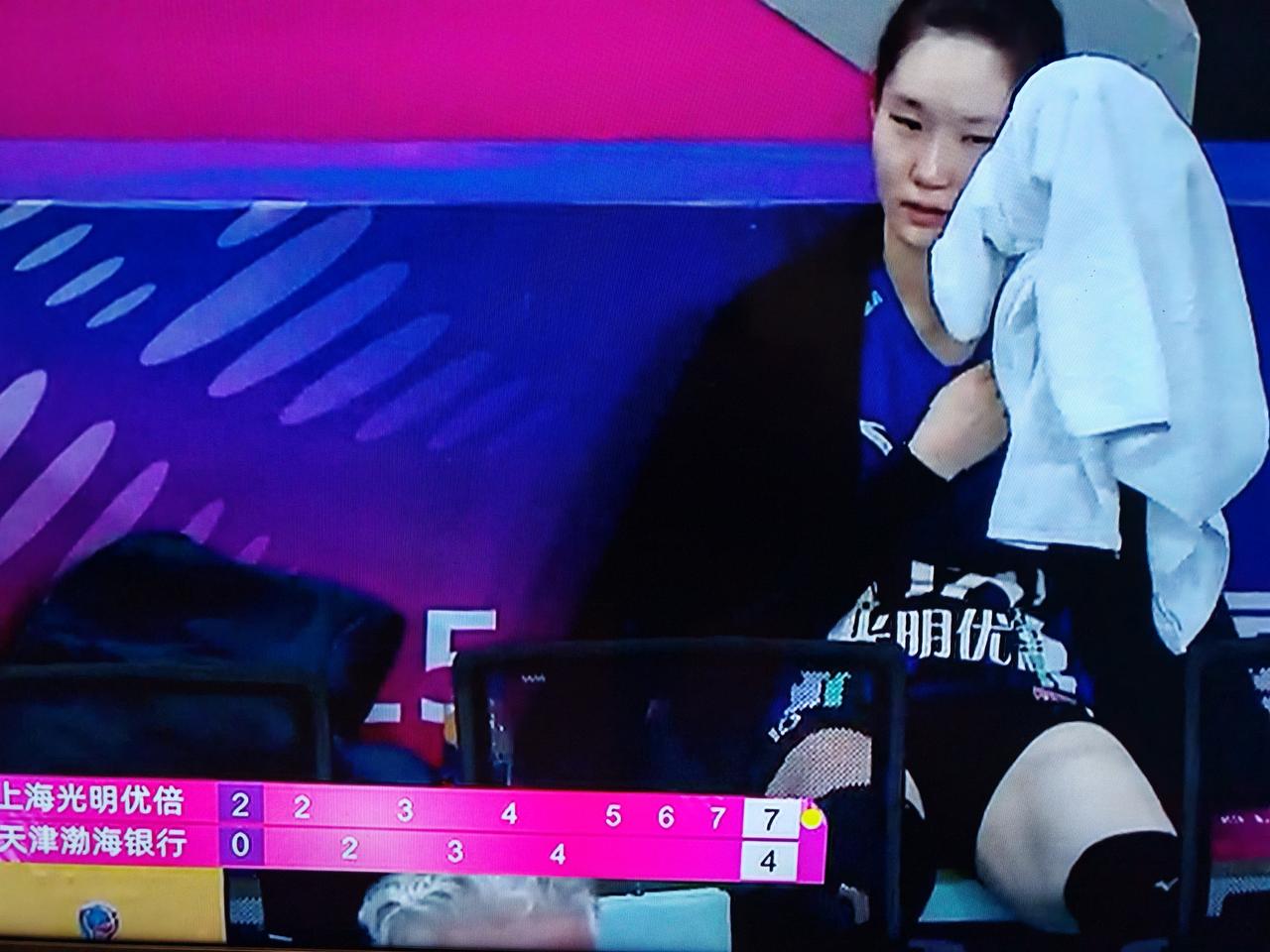 女排排超联赛第十六轮的比赛,上海女排对阵天津女排,比赛第二局许晓婷与高意相撞,高意的头撞上了许晓婷的太阳穴,许晓婷倒地后,连续起了两次,都没有起来,被黄欣悦换下场,第三局黄欣悦主打,与上海女排主力配合也很好,黄欣怡看起来身体素质很好,二次扣球也很有力量。许晓婷在场下一直在冰敷,应该没有大碍。女排联赛 上海女排