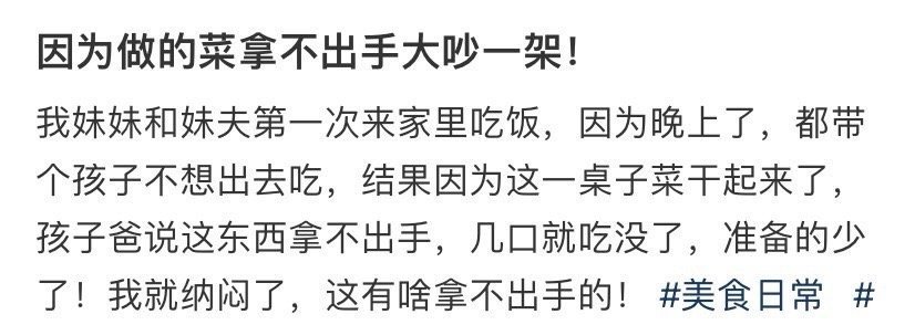 因为做的菜拿不出手大吵一架