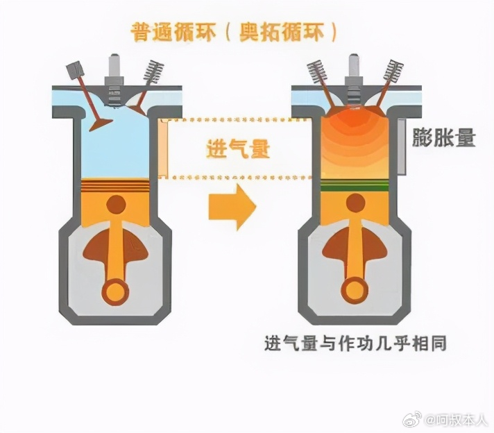 很多人脑子里停留的是传统自然吸气汽油机40%左右的热效率,这个理解没错。过去十几年主流量产汽油机峰值有效热效率大概就是38%—41%。热效率本质上是燃油化学能转成曲轴输出功的比例,想提高就2条路:提高压缩比和膨胀比、减少泵气损失和散热损失。米勒循环的逻辑就是“压缩比不变甚至降低,但通过提前关气门拉大有效膨胀比”,让燃烧气体多做功。