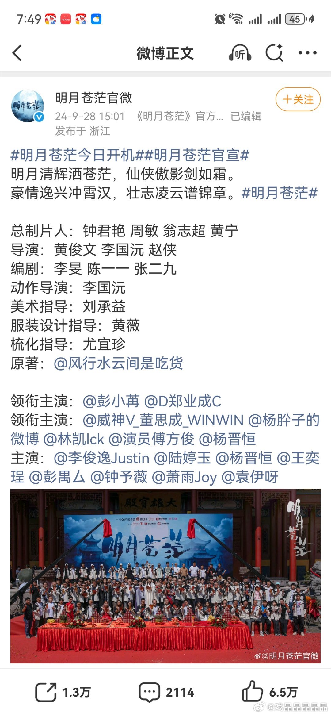 明月苍茫是烨华的剧,制片人是钟大妈,钟大妈去年的三部剧都扑街了,平台对她的新作品肯定很谨慎,现在传闻明月苍茫被退货,可惜了郑业成。