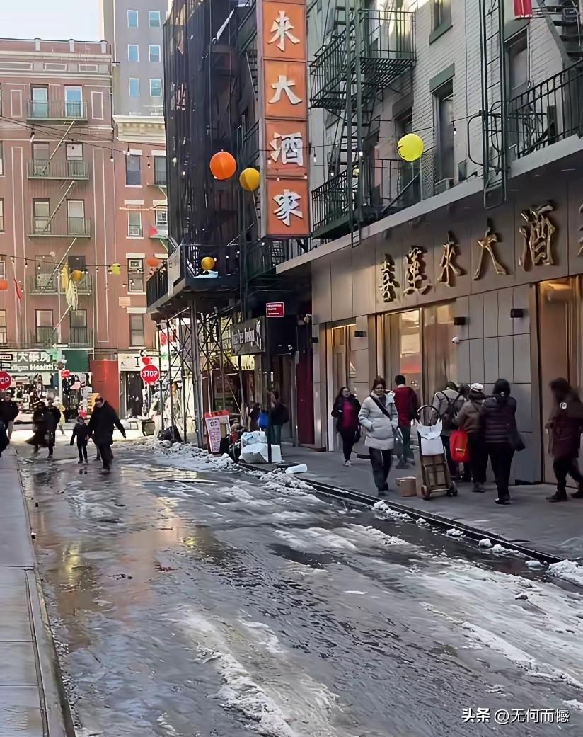 纽约的唐人街,原来如此,这个地方也是脏乱差,厚厚的积雪堆积在道路上,都已经变黑了,看来并没有得到及时的清运,这里的店铺看起来也是相当的萧条,楼房也比较老旧,看不出一点繁荣的样子,以前听说唐人街非常火,现在看来不过如此而已,与我们国内这小县城相比,感觉都有一定的差距!