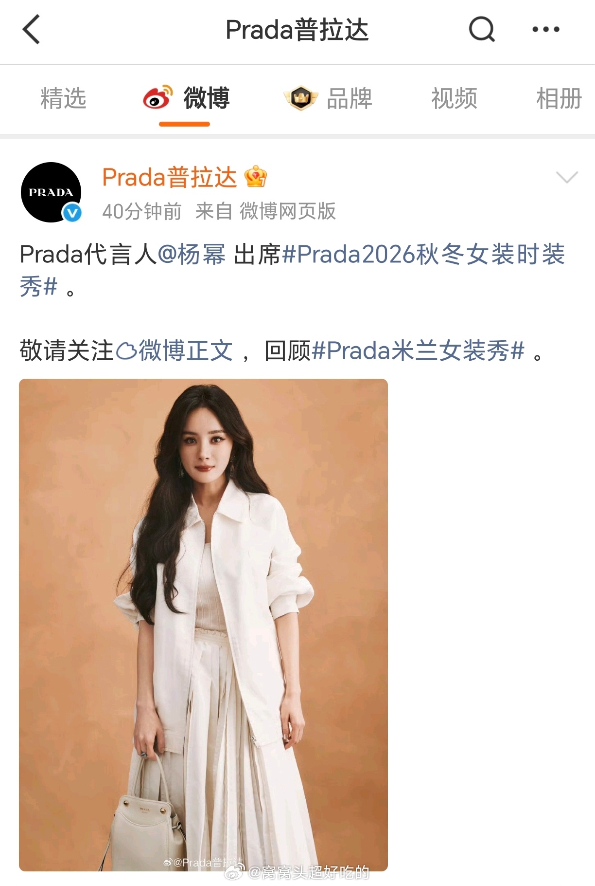 PRADA2026秋冬女装系列大秀,昨日于米兰时装周盛大落幕。品牌代言人杨幂以