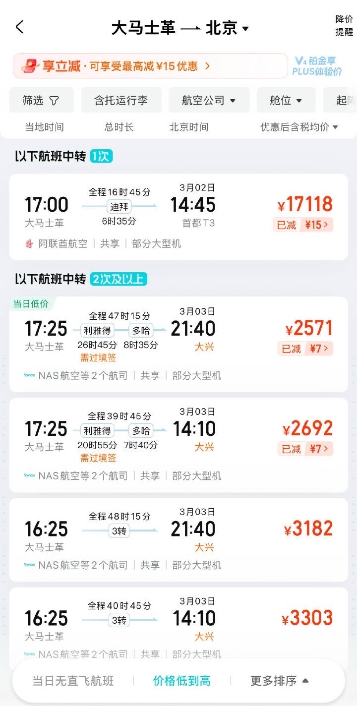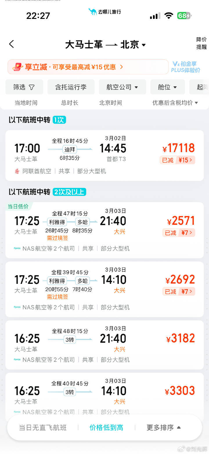以色列宣布袭击伊朗 什么中东回国机票382万,大马士革飞香港50万。其实没那么夸张,我刚搜的,机票也就两三万,最快3 号 4 号就能回国。