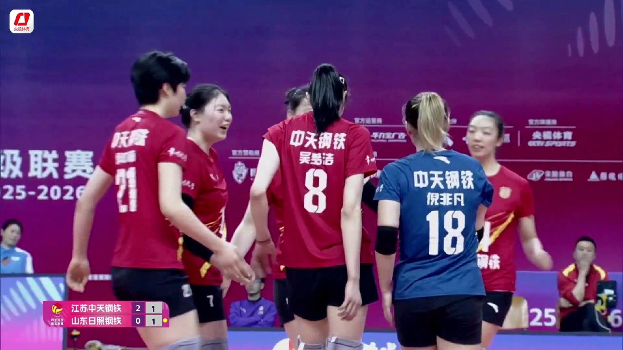 季后赛第2轮:江苏女排主场3:0横扫山东女排,两战两胜豪取6个积分排名榜首 2025-2026赛季中国女排超级联赛季后赛第二轮,江苏中天钢铁女排主场迎战山东日照钢铁女排。双方上演全华班对决,江苏队凭借更稳定的发挥、高效进攻与严密拦网,直落三局以25-21、25-21、25-17完胜对手,总比分3-0拿下关键一胜。 本场比赛江苏队攻防两端表现出色,吴梦洁、唐欣领衔进攻线,火力稳定输出,周页彤、杨佳等队员多点开花,有效撕开山东队防线。倪非凡坐镇后排,一传与防守稳健,为球队快速反击提供保障。山东队虽奋力抵抗,但进攻端受阻,一传动摇,难以形成持续威胁。 在d组,江苏女排两战两胜豪取6个积分,山东女排两战一胜拿到三个积分,浙江女排和福建女排的比赛正在进行,前两局双方战成1:1平。 而在c组,上海女排两战两胜积6分,天津女排两战两败积1分,北京女排两战1胜1负积3分,河南女排两战1胜1负积2分。 C组天津女排积分垫底,名列倒数第一名(第四名)。 上海 天津 北京 女排联赛 中国女排 江苏河南 浙江