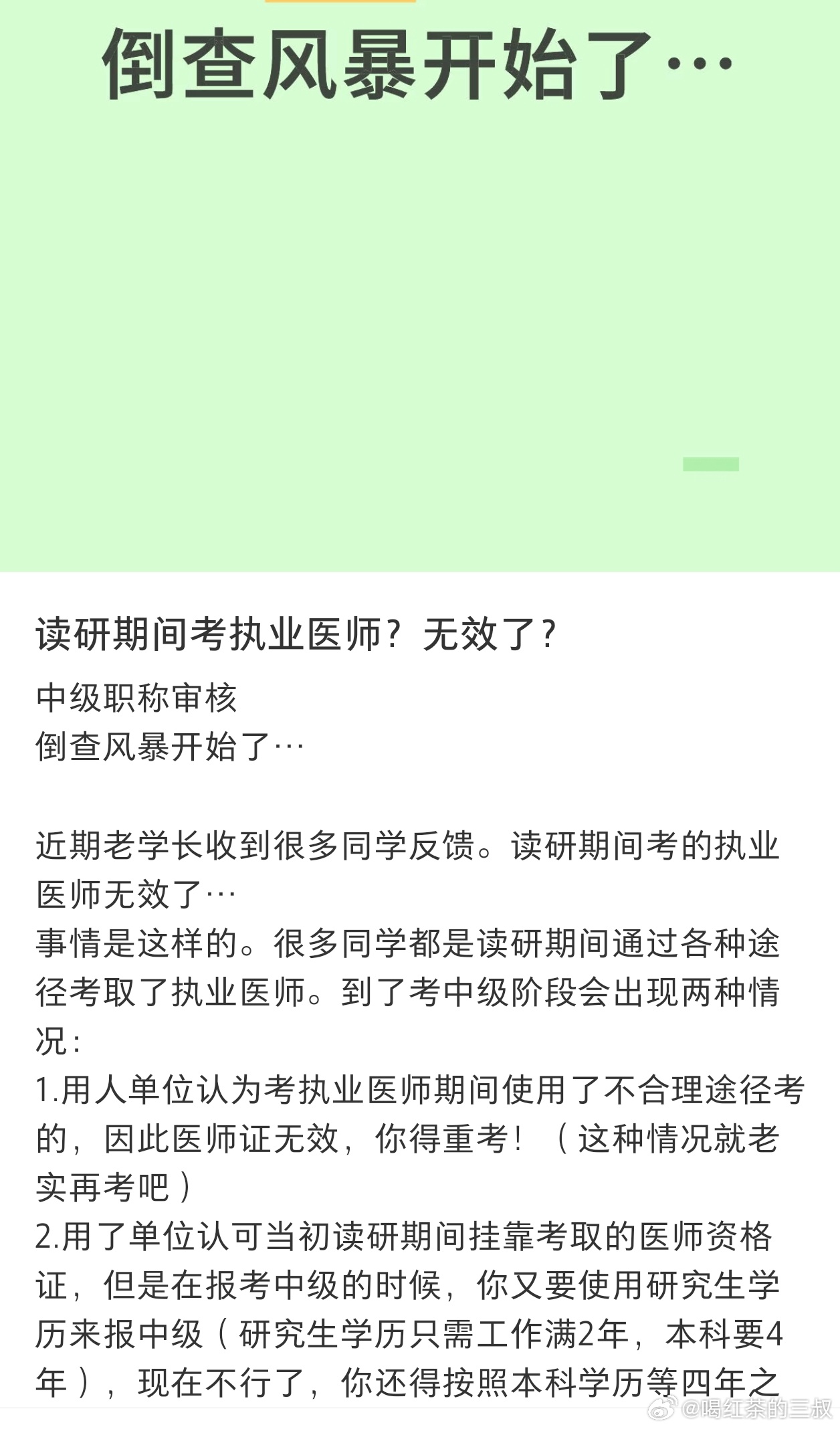 注:学硕不让随便考医生执业证。如果在读期间投机取巧挂靠别的医院(诊所)考出来的,也会延长或者取消考中级(主治)时间。