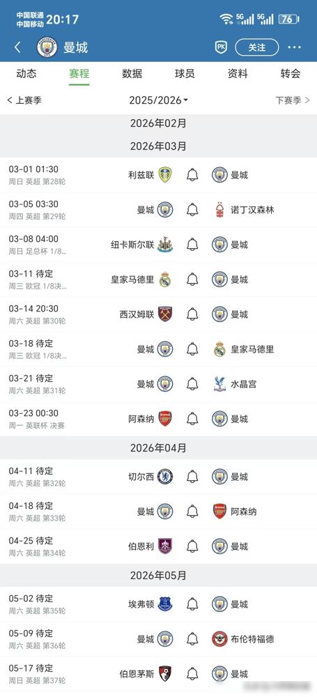 曼城的3月,15天定生死。 一边是阿森纳,欧冠抽中大礼包,足总杯对手是低级别球队。另一边,曼城要连续第5年死磕皇马,这赛程简直是地狱模式。 四线争冠,谁都不想放。平均3天一场硬仗,球员不是铁打的。更要命的是,3月22号,两队还要在温布利踢联赛杯决赛,刺刀见红,谁输了都可能引发连锁崩盘。 王朝的建立,从来不靠签运好,全凭把所有硬骨头都啃下来。