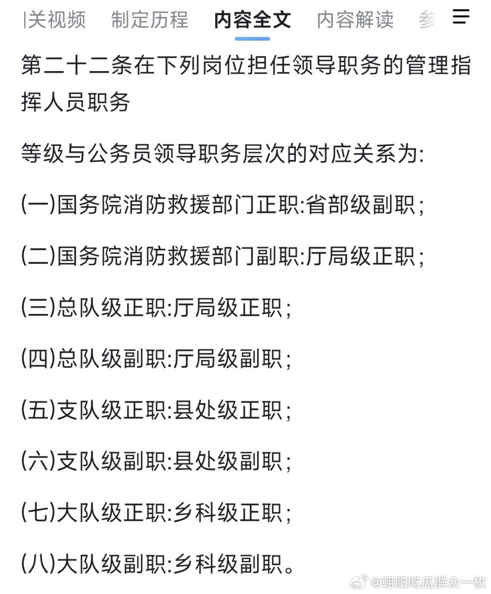 《国家消防救援人员法(草案)》规定了相应的职务级别。