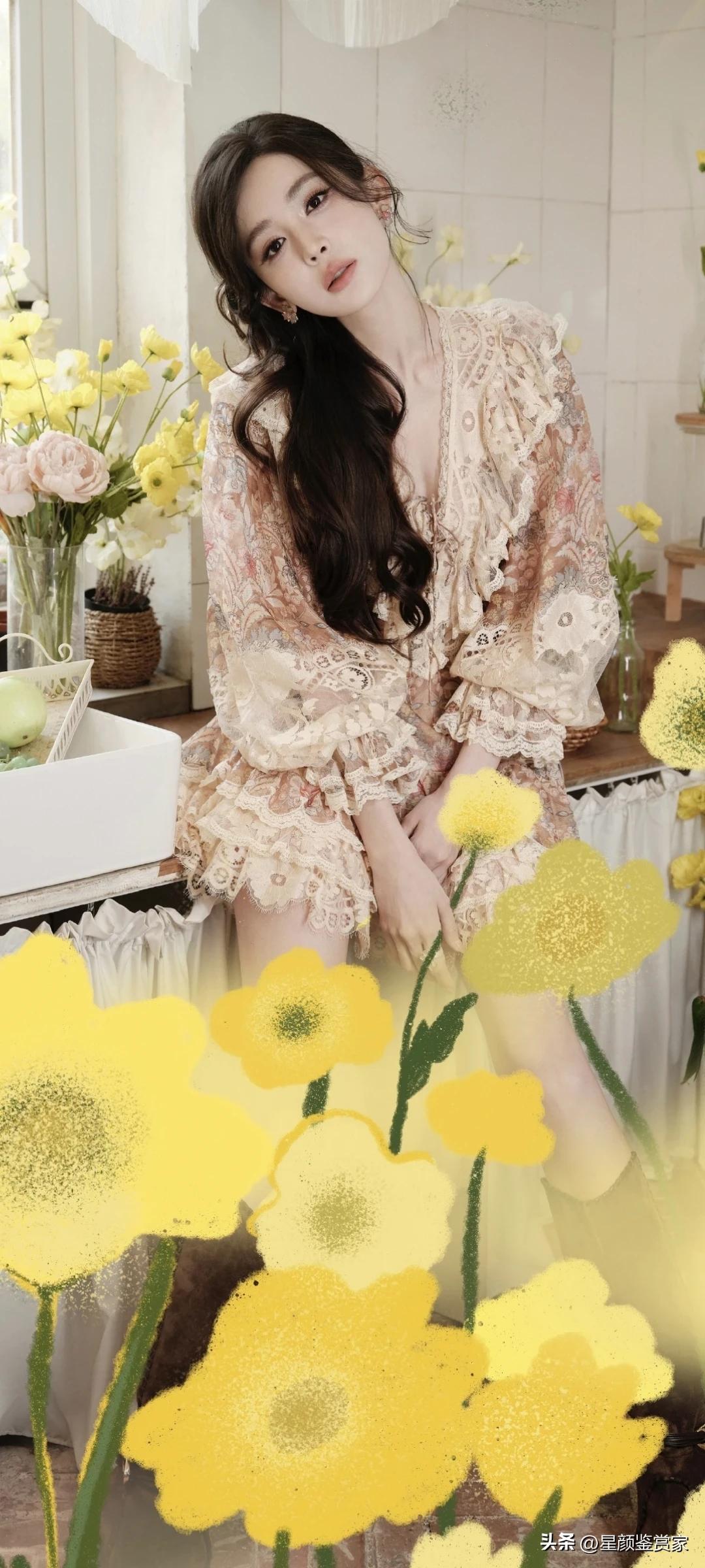 古丽娜扎写真壁纸~花房里的蕾丝少女,每一处细节都在散发迷人气息 晒图笔记大赛