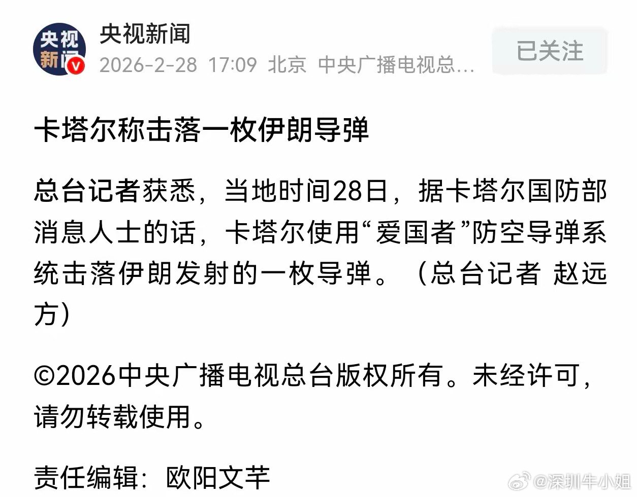 卡塔尔击落一枚伊朗导弹,阿联酋击落一枚伊朗导弹,这还怎么打呢,伊朗导弹过境的国家都打,以色列打伊朗的导弹都装看不见,整个中东几乎都怕小霸王,整个中东几乎都要巴结美国。你说这仗该怎么打?伊朗只能挨打的份了。