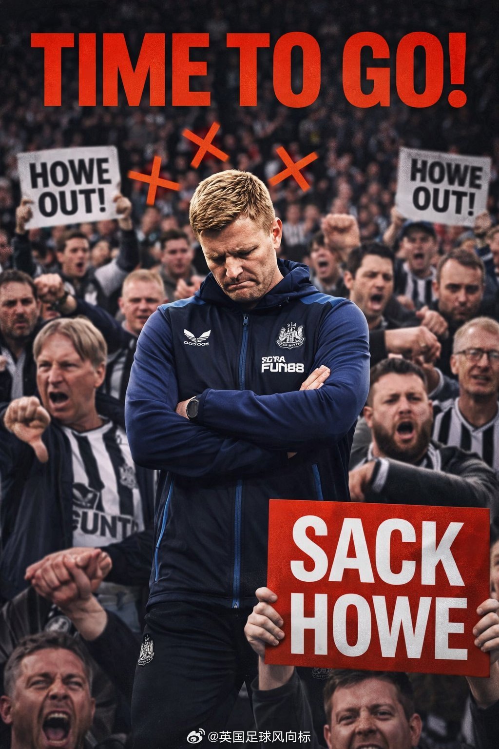 埃迪豪执教纽卡斯尔联,最近6轮英超联赛,输掉了当中的5场,联赛排名仅仅是第12位,落后前五多达12分,争五希望越来越小。在英推上面,要求埃迪豪下课的AI图到处可见。