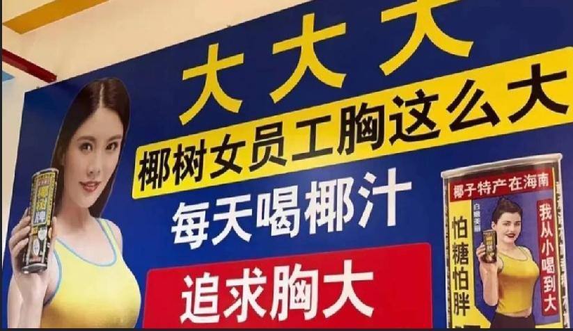 素以「踩界」营销闻名的内地饮品巨头椰树集团,近日又因宣传标语引发低俗争议。集团近期开放工厂供公众参观,厂区内「椰树女员工胸这么大」「追求胸大是让婴儿有奶吃」等标语被游客拍下后在网上疯传,引发舆论炮轰,被指「死性不改」,将低俗营销刻入品牌DNA。 事件源于椰树集团近期推出的工厂参观活动。有游客发现,厂区挂满极具争议的横幅,除上述露骨字句,还有「我们美女帅哥多」「大大大」等标语,搭配其标志性的丰满女性形象。网民纷纷批评其宣传「物化女性」「不堪入目」,质疑其故意制造话题。 宣传广告语涉嫌低俗。面对外界批评,椰树官方客服仅称这是「集团做的宣传」,对员工看法表示「不清楚」,态度相当淡然。实际上,椰树集团因低俗宣传已是监管部门的「常客」,2024年5月便因「用椰子擦乳」等广告语,被海口市市场监管局以「违背社会良好风尚」为由重罚40万元(人民币,下同)。 尽管争议不断、罚款缠身,椰树集团业绩似乎未受重创,去年销售额仍稳站50亿元水平。外界普遍质疑,椰树集团已将此类「黑红」(因负面新闻而走红)路线视为流量密码,把区区数十万元罚款当成划算的「营销成本」,以换取巨大的品牌曝光度。然而,这种依赖低俗噱头的发展模式,长远看恐将严重损耗品牌形象。