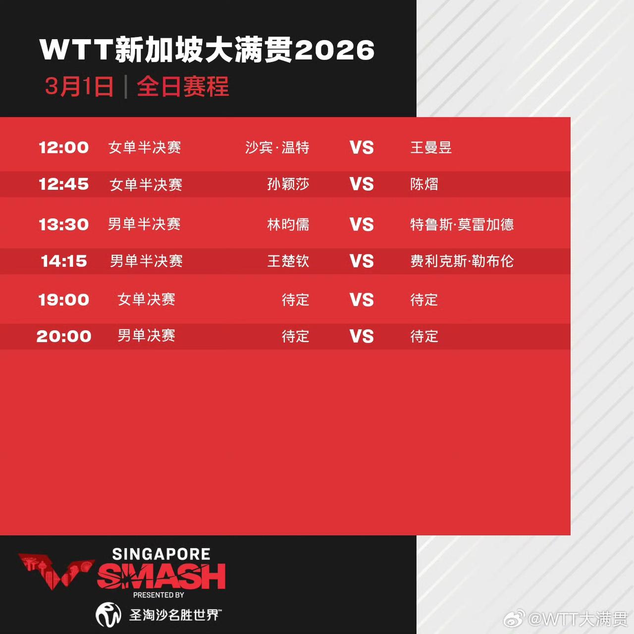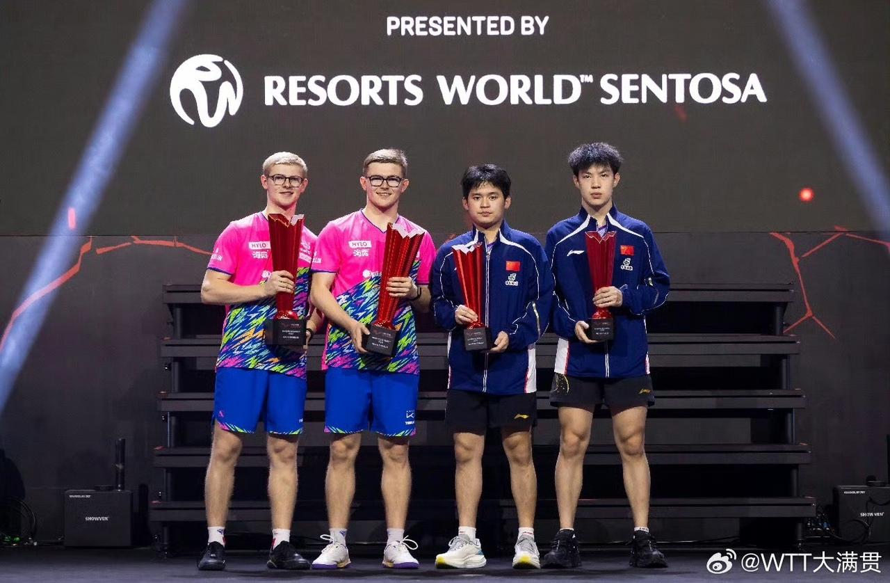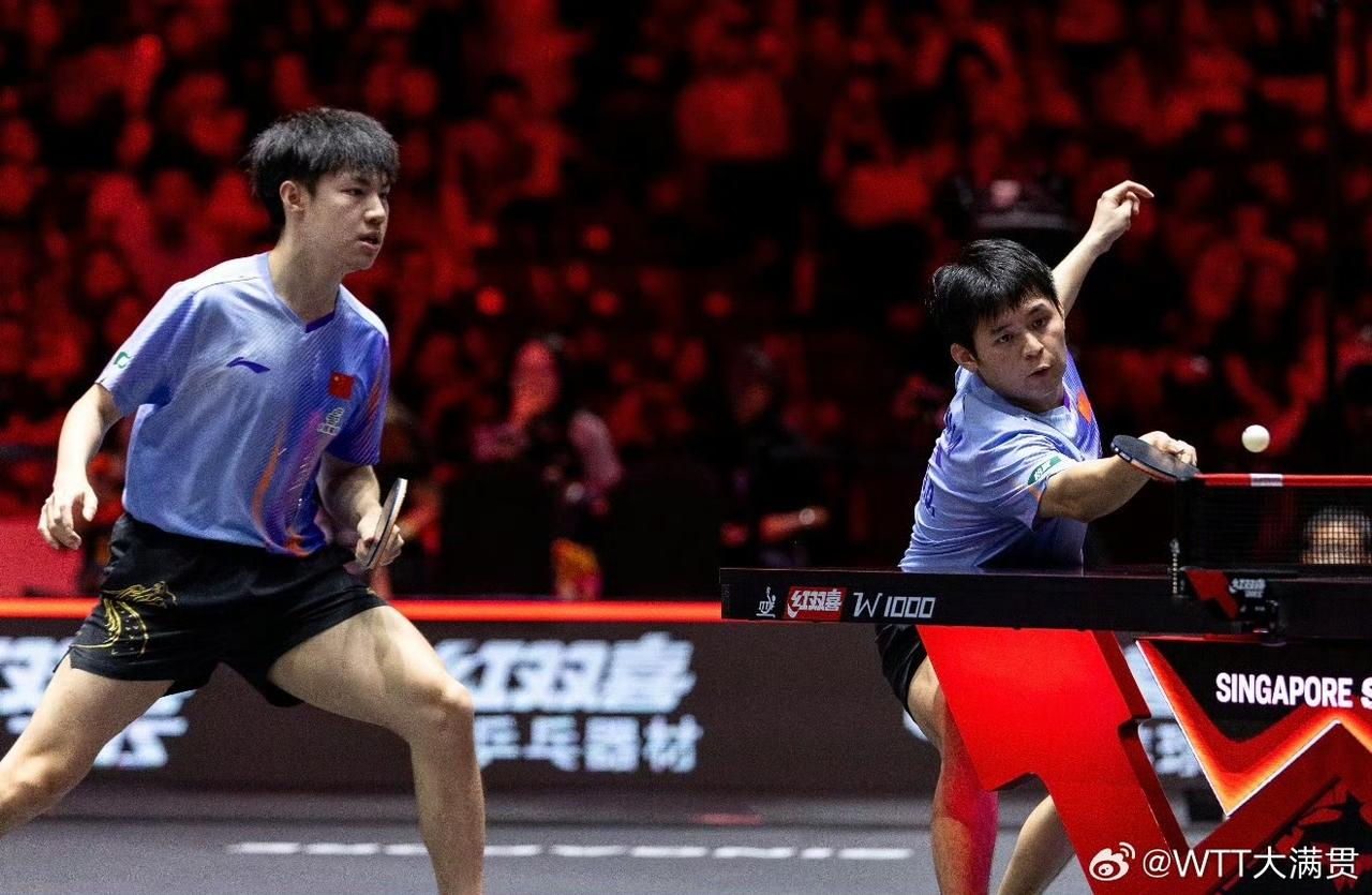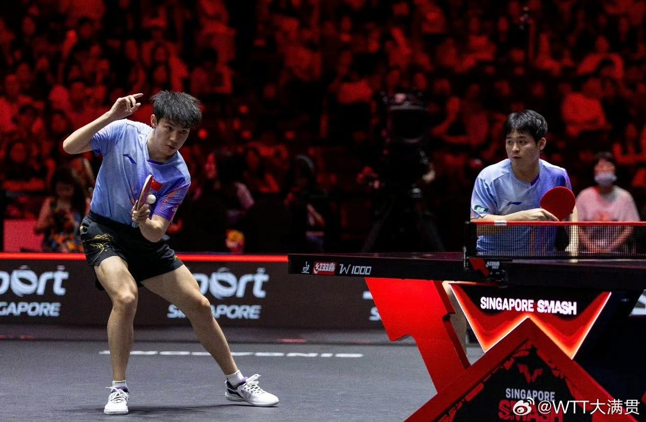 继混双失手之后,国乒男双在新加坡大满贯赛决赛中又饮恨,这次是林诗栋黄友政,输给了勒布伦兄弟…F·勒布伦/A·勒布伦(FRA)3-0林诗栋/黄友政(CHN)【11-6,11-6,11-7】。大小布此站全面开花并杀进男单四强,半决赛小布对阵王楚钦,但愿王楚钦顶住。孙颖莎王曼昱陈熠进入女单四强,盼最终登顶的是国乒一员。