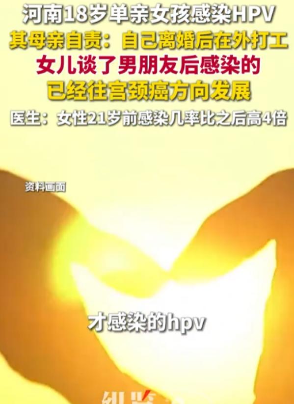 河南郑州,18岁女孩突然身体不适,下体出血,一查竟感染多种高危HPV,还往宫颈癌发展,原来女孩交了男友,不懂防护才染病,单亲母亲刘大姐自责不已,称早知道就不出去打工了,医生表示HPV感染年轻化,21岁前同房感染几率高四倍,好在发现及时还能治疗,刘大姐想提醒其他家长重视孩子健康教育。 前阵子在河南郑州,出了一件让人揪心又惋惜的事,一个18岁的小姑娘,本来正是青春懵懂、无忧无虑的年纪,突然就觉得身体不对劲。 她的下体莫名出血,一开始她还不好意思说,拖着没去医院,直到症状越来越明显,才被家里人发现,赶紧带去做了检查。 检查结果一出来,不管是小姑娘还是她妈妈,都彻底懵了,她竟然感染了多种高危型HPV,而且病情已经有往宫颈癌发展的趋势,这可不是小毛病,要是发现得再晚一点,后果真的不敢想。 后来医生追问才知道,原来这个小姑娘交了男朋友,两人在一起的时候,完全不懂任何防护措施,才不小心染上了病毒。 小姑娘今年刚满18岁,对这些健康知识几乎一无所知,以为只要没什么明显不适,就不会有问题,殊不知这种疏忽,差点酿成无法挽回的后果。 小姑娘的妈妈刘大姐,是个单亲妈妈,和孩子爸爸早就离婚了,为了能多挣点钱,给孩子更好的生活,刘大姐常年在外打工,把女儿一个人留在家里照顾自己。 刘大姐知道这个事情之后,整个人都垮了,她只能一边陪着女儿治疗,一边不停自责,嘴里反复念叨着“早知道就不出去打工了,要是我守在孩子身边,肯定不会让她出这种事”。 看着刘大姐憔悴的样子,没人能忍心指责她,她不是不爱孩子,只是身为单亲妈妈,不得不扛起生活的重担,忙着赚钱养家,就忽略了对孩子的健康教育。 这其实也是很多家庭的现状,家长们总觉得孩子还小,不好意思跟他们讲性健康、自我保护的知识,要么就是忙于生计,根本没精力顾及。 接诊的医生也说了,现在HPV感染越来越年轻化,尤其是21岁之前就有同房行为的,感染高危型HPV的几率,比21岁之后要高四倍。 不过好在这个小姑娘发现得及时,目前还能通过治疗控制病情,只要积极配合,就能慢慢好转,这也算是不幸中的万幸。 可能很多家长还不知道,HPV并不是什么罕见的病毒,它主要通过性接触传播,而且很多年轻人因为不懂防护,很容易中招。 高危型HPV如果持续感染,就有可能引发宫颈癌,这可不是危言耸听,尤其是青春期的孩子,生殖器官还没发育成熟,抵抗力也弱,更容易被病毒侵袭。 刘大姐现在最大的心愿,就是女儿能早日康复,同时她也想提醒所有家长,不管平时多忙,都一定要重视孩子的健康教育,尤其是青春期的孩子。 所以多跟孩子讲一讲自我保护的知识,让他们懂得如何爱护自己,才能避免类似的悲剧发生。 希望所有家长都能引以为戒,别等出了问题再后悔,好好陪伴和引导孩子,才是对他们最好的保护。