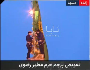 【升旗!】伊朗伊玛目里扎圣陵更换旗帜,并在神圣的穹顶上展放象征哀悼与复仇的旗帜。