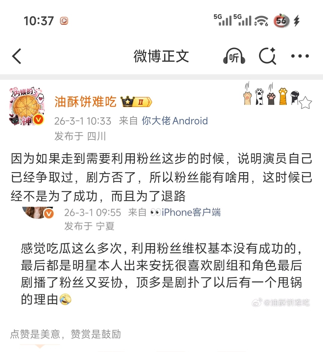🍉:1,做头发是真不会上节目了,现在已经在铺垫舆论了,之前女星主动找过节目,也