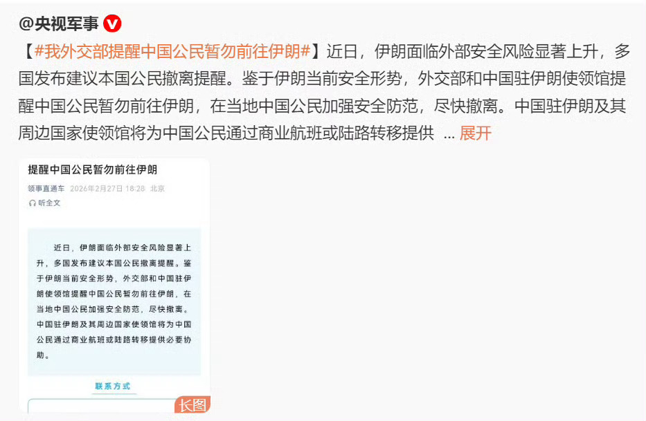 🔻以色列和老美动手前一天晚上,我国驻伊朗德黑兰大使馆和外交部都发出了警告,相当于提醒伊朗,你要被打了。🔻结果牢哈和自己一堆家人还是被一锅端了,救不了真的。