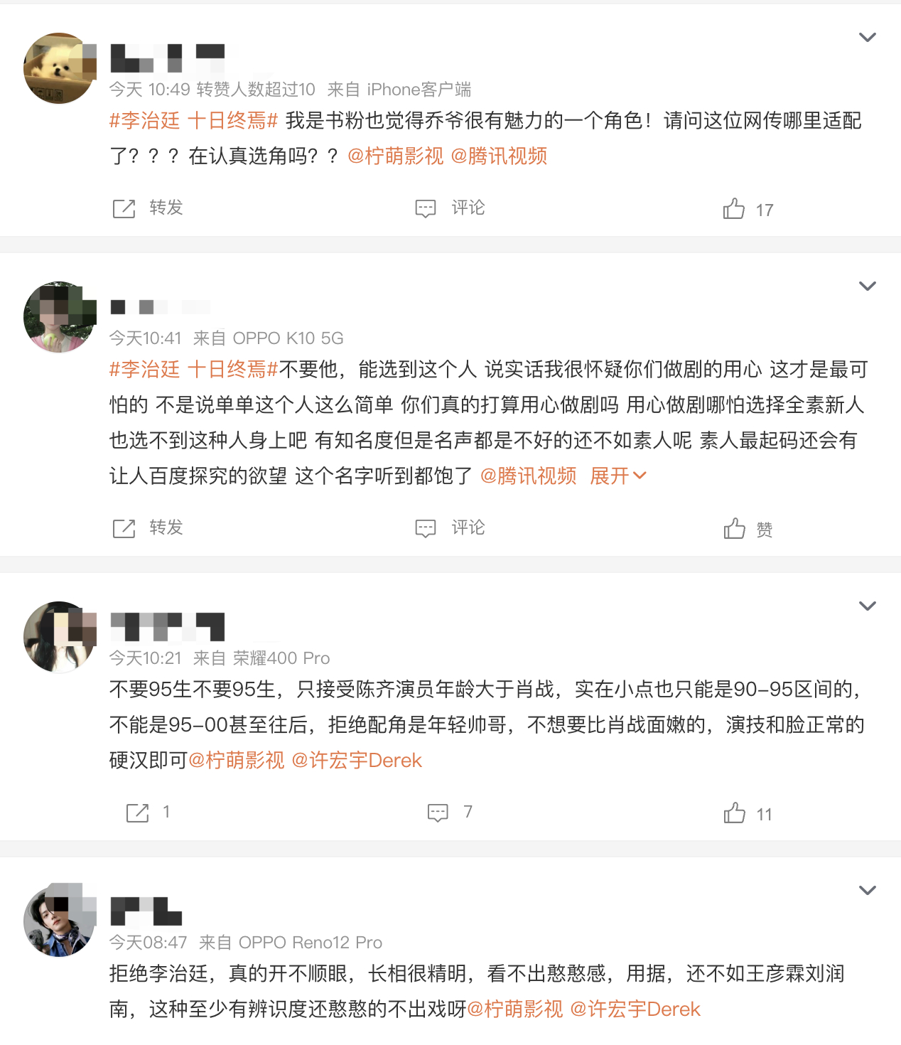 李治廷广场没淹没了,网友都在说腾讯视频用十日终焉骗肖战进来杀,柠萌影视用脚选角,怎么看?