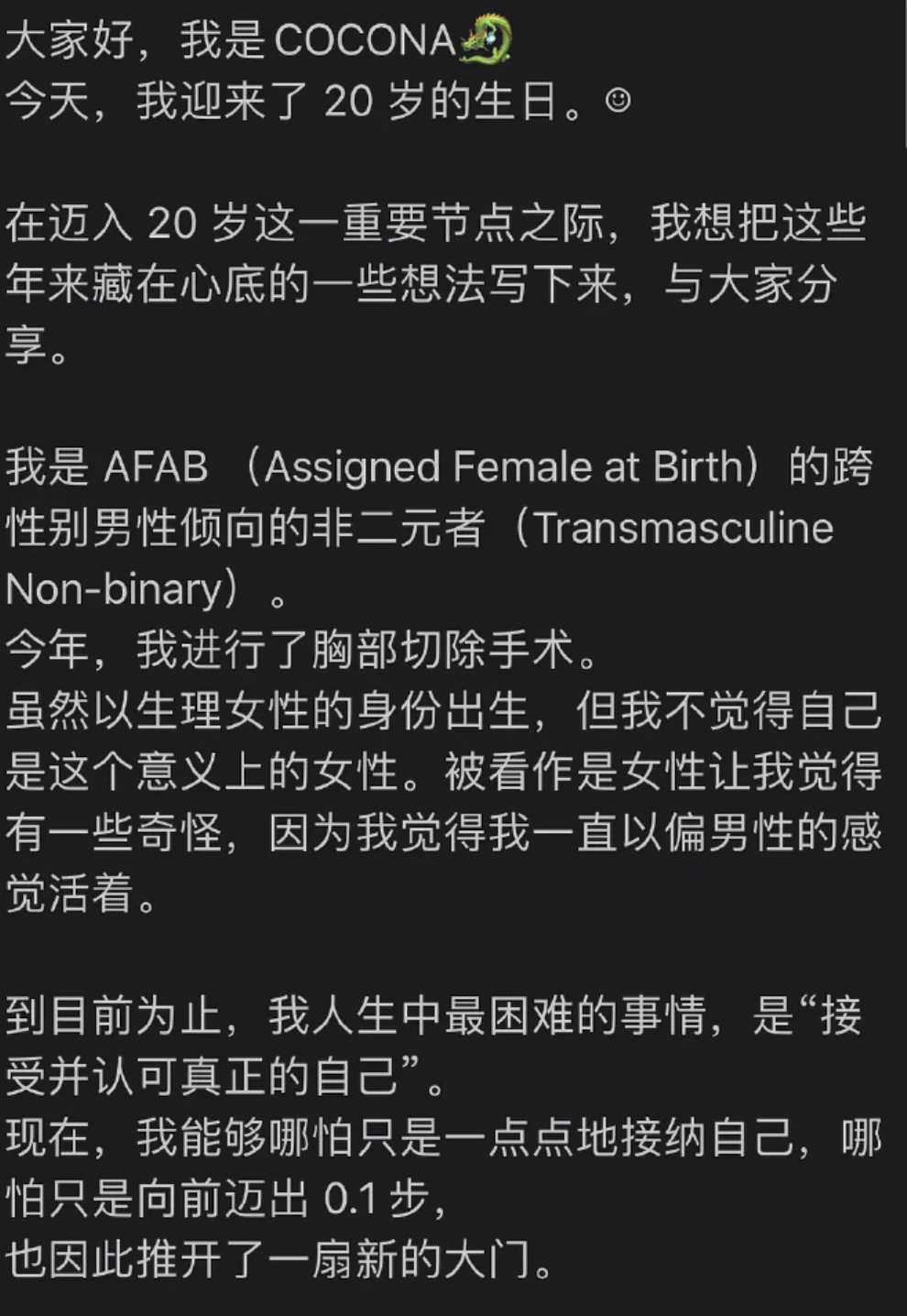 XG女团成员Cocona切除胸部当男人了,当伪娘的很多,当伪爷的明星真第一次见,