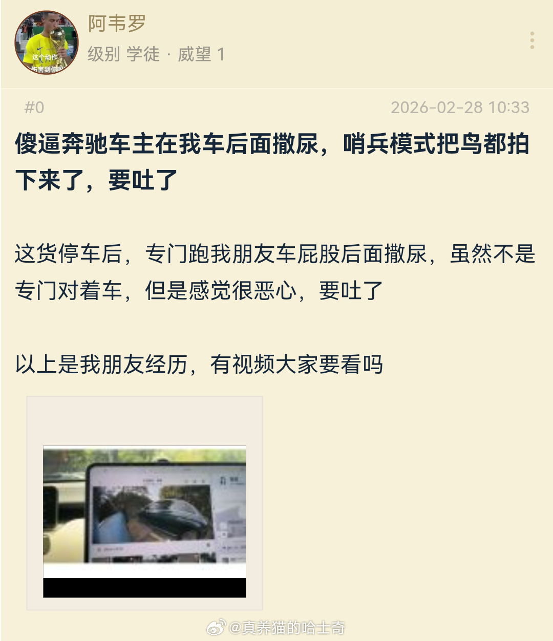 笑,又有在车边尿尿被哨兵模式拍下来的。就算你实在憋不住了,也不能在人家车边尿呀,这下鸟都被拍下来了。