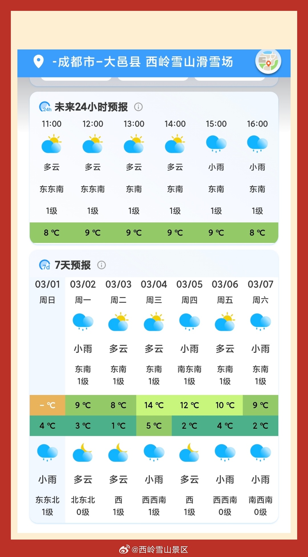 西岭雪山3月1日(十三)气象预报#西岭雪山#