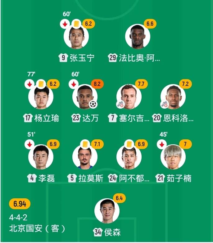 国安 20 号外援太突出了,两个进球都是从他这发起的,第二球直接助攻