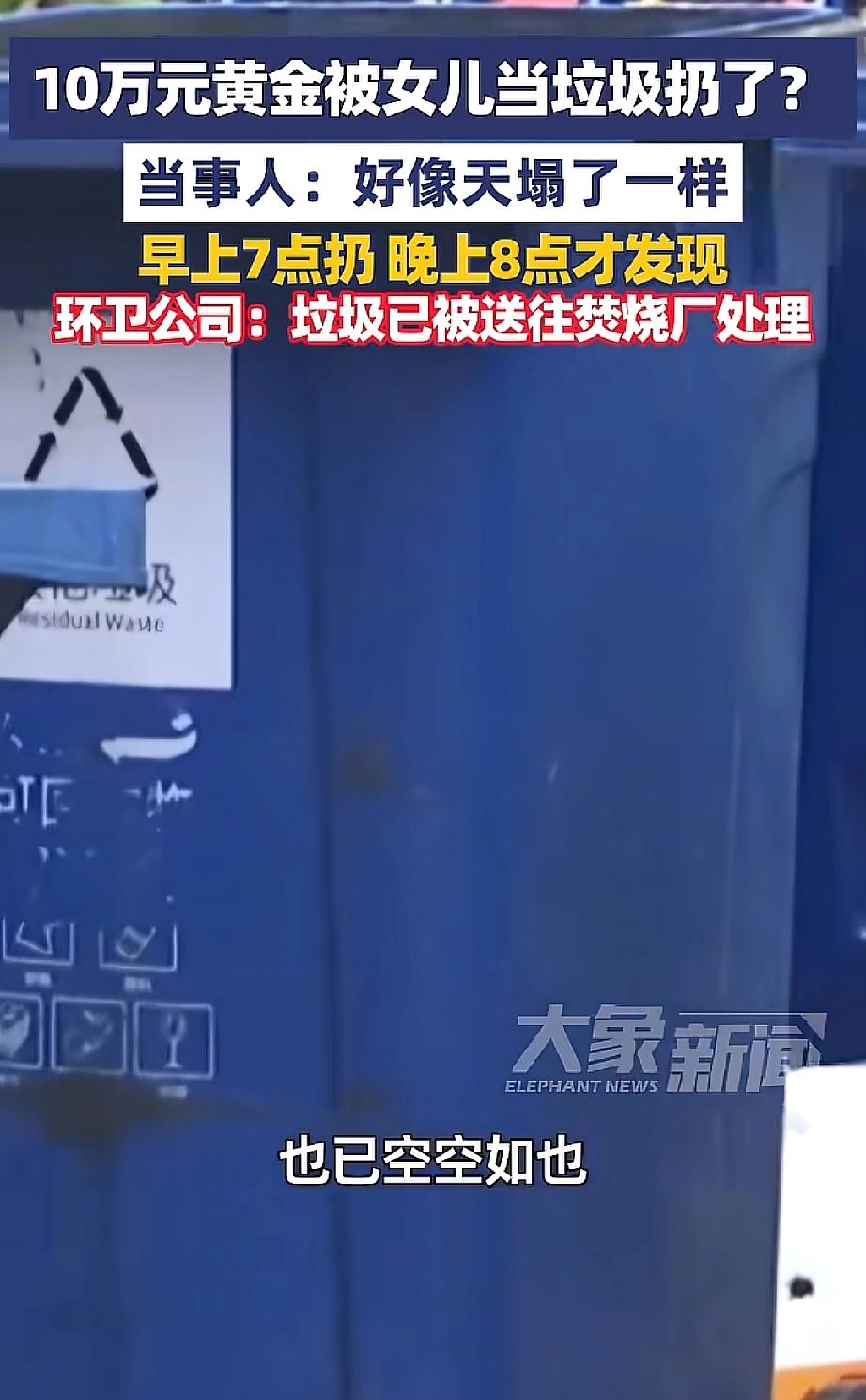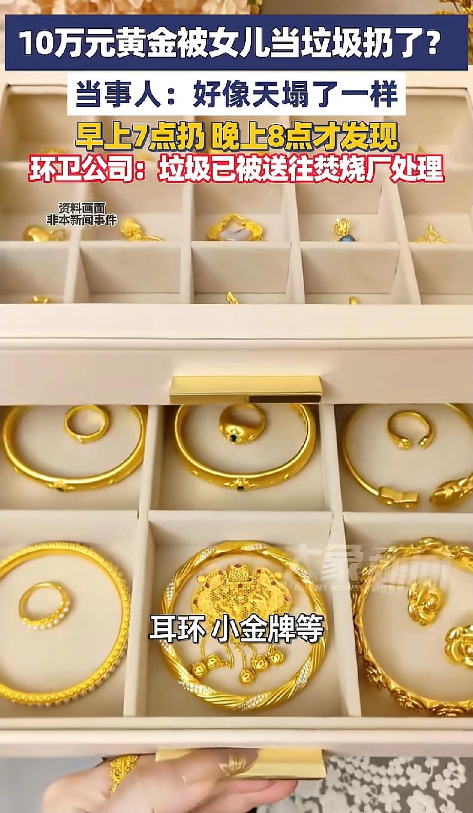 天塌了!广东佛山,陈女士把近10万元的百克黄金随手放茶几,女儿误当垃圾扔了。时隔13小时全家发现时,这批垃圾早已被送进焚烧厂,找回希望渺茫。妈妈:心都碎了! 佛山的陈女士,把一袋子“宝贝”随手搁在茶几上——里面有80克的大金项链,还有戒指、耳环、小金牌,加起来近百克黄金,按金价算价值近10万。 早上7点多,女儿看家里该收拾了,瞧见茶几上这个“没人管”的袋子,想都没想就当垃圾扔进了楼下垃圾桶。 直到晚上8点,陈女士突然反应过来:“我那袋金子呢?” 一家人火急火燎冲下楼,把垃圾桶翻了个底朝天,啥也没找到。问物业,物业摆摆手:“早收走了。” 记者联系环卫公司后,得到的答复让人心凉——这批垃圾2月27号下午就被送进焚烧厂了。 从扔到发现,整整13个小时,金子从家到垃圾桶,再到转运站,最后进了焚烧炉。陈女士受访时说:“感觉天塌了一样。” 10万对普通家庭来说,可能是几年积蓄、孩子学费、老人的心血,就这么没了,换谁不崩溃? 有网友吐槽:“妈妈心也太大了!10万的东西随手放,能怪谁?” 有网友替女儿心疼:“她就是想打扫干净,好心办坏事,这得留多大阴影啊!” 还有网友说:“一家人都有责任,没提前沟通清楚呗。” 但我觉得,最难受的肯定是女儿。她只是想让家干净点,谁知道一个袋子里装着10万?现在她得多愧疚,以后收拾屋子还敢不敢动手? 其实这事儿看着离谱,生活里还真不少见。黄金平时不常戴,随手一放就忘;家里人多,你放我收,最容易栽在这些“随手”的疏忽里。 给大家提个醒,别让“随手”变成“后悔”: 1. 贵重物品别用破袋子随便搁!要么买个首饰盒锁好,要么存银行保险柜,别图省事。 2. 家里有贵重东西,跟家人打个招呼:“茶几那袋子别动,有贵重物。” 一句话能省大麻烦。 3. 收拾时多留个心眼,不认识的袋子盒子,打开看看再扔,总比扔了哭强。 希望陈女士家能有奇迹,但咱们普通人,还是把“细心”揣好,别让血汗钱栽在疏忽里。