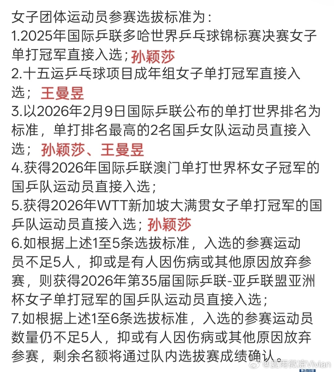 之前中国乒协发布了《2026年国际乒联伦敦世界乒乓球团体锦标赛决赛选拔办法》,根据上述的选拔方式,男队依旧是王楚钦、樊振东(不知道回不回来)、林诗栋,而女队依旧是孙颖莎和王曼昱两个人,前面扛旗的背后空无一人。。。