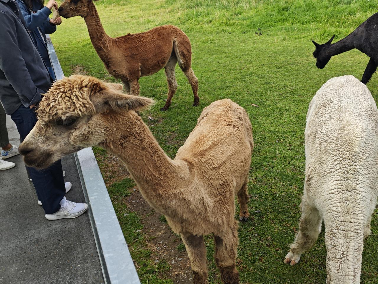 温顺的羊驼 南岛之旅的最后一晚,我们住宿的酒店外观上就像中国古代的车马店,马导介绍说这是一家大型的连锁旅游酒店,当晚的房间挂牌价是400纽币。 酒店地处荒郊野外,周围没有看到任何民居,好像说这里距观星点比较近,这也许是酒店建在这里的原因吧! 晚上继续是西餐,餐厅里的黑人服务员比较多,这个切肉的黑人好像刚刚学会几句汉语,见到我们不停地笑着说“你好!”然后指着案板上的熟肉说“牛肉,羊肉、猪肉。”感觉挺可爱哈! 次日早餐后,我们离开酒店,距离基督城还有二百多公里,路过一处观赏羊驼的小景点。 羊驼,偶蹄目骆驼科小羊驼属,原产于南美洲安第斯山脉,脖颈修长,头小耳尖,全身覆有厚密的绒毛,性情温顺胆小,长相呆萌可爱,很受人们喜爱。 来到羊驼观赏点,前边是一个旅游商店,售卖与羊驼相关的旅游产品。看到羊驼温顺可爱的样子,人们的脸上自然地挂上了笑容,尽管刚刚剃过毛,依然不失它们那可爱的呆萌态。 告别了温顺的羊驼,汽车继续奔驰在南岛的一号公路上。马导介绍说,十二点半到达基督城,中午给大家安排一顿中餐,餐后有两个小时的自由活动时间,大家可以游览一下基督城的街景。