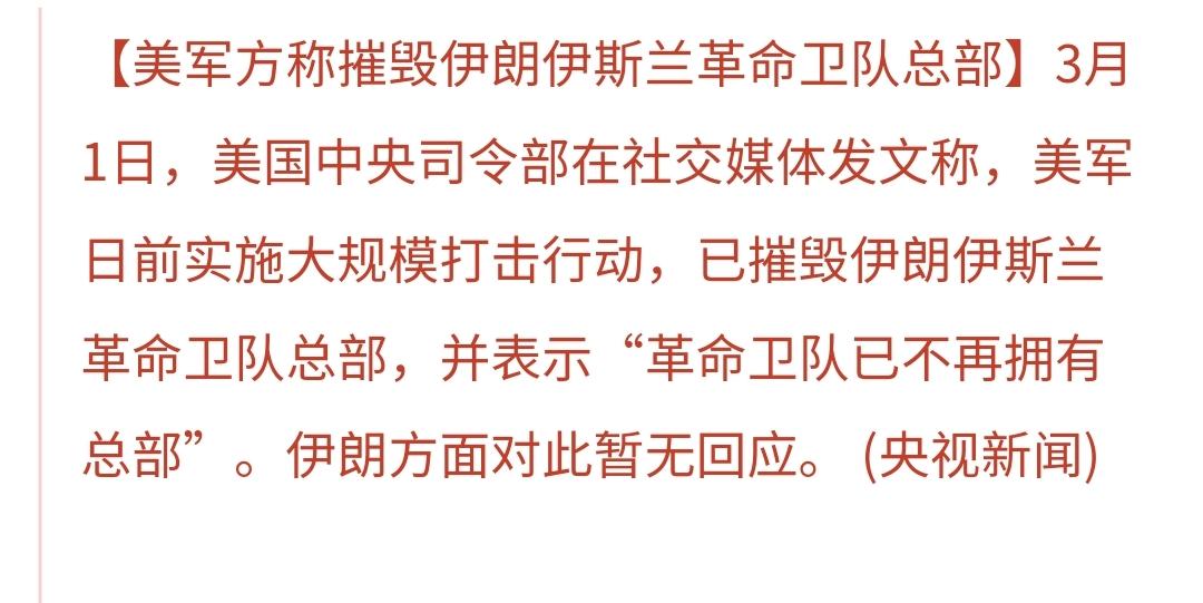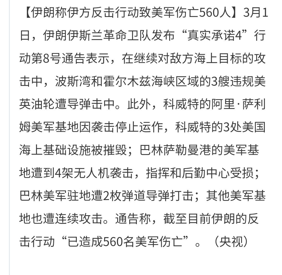 特朗普:对伊朗军事行动可能持续约4周左右 一夜醒来,消息扑朔迷离,美军宣称摧毁了伊朗伊斯兰革命卫队总部,伊朗宣布会造成美军560人伤亡。 战争持续的时间越长,对市场的影响越大,如果能够速战速决,市场的影响才会微乎其微,如果战争真的只持续四周左右的时间,这里会让我们的市场形成一个黄金坑,但我认为,伊朗真的有可能撑不到四周的时间,能撑到两周的时间就不错了,大概率会在一周左右的时间结束。 今天我们的市场会低开,低开以后反弹的过程当中还是要看有没有资金进场,没有资金进场的反弹都是耍流氓,我们都不能上当受骗,手上有资金的人,耐心等待黄金坑的到来,手上全部是筹码的人,忍一忍,扛一扛,很快就会过去了。 花1秒钟点赞,花30秒钟评论,就是对我最大的支持,谢谢大家的支持。
