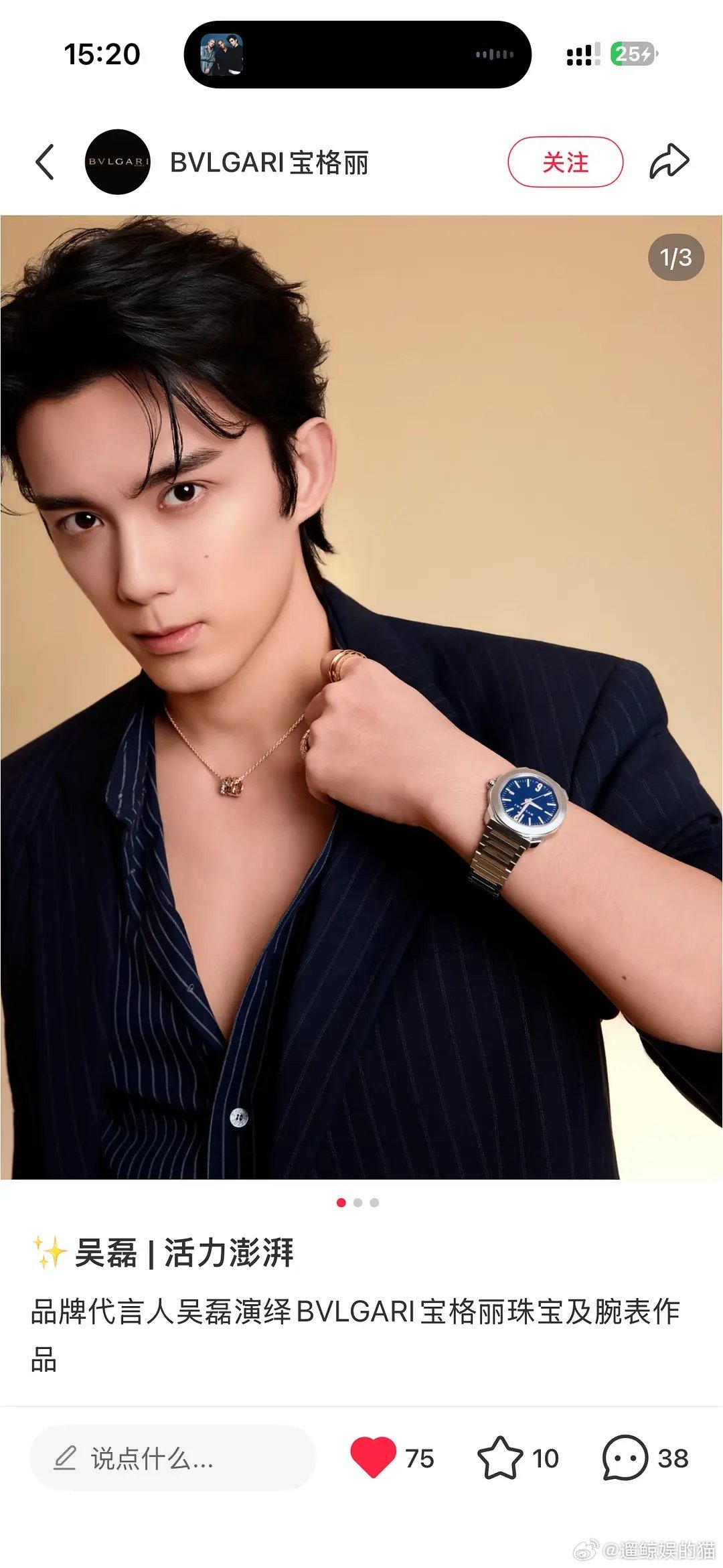 宝格丽:“不讲不讲 害怕吴磊不和我们合作了 赶紧发一条表忠心”