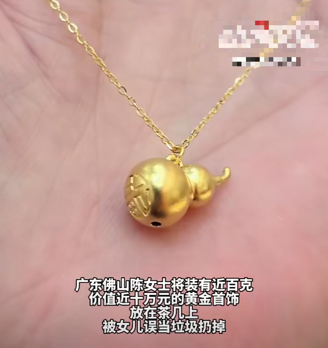 后悔也来不及呀!广东佛山一女子近百克黄金被女儿当垃圾扔进垃圾桶,紧急联系垃圾站工作人员。工作人员:“垃圾已经被送进焚烧厂做焚烧处理。” (信息来源:新闻夜航3月1日发布) 广东佛山的陈女士将自己将近100克的黄金首饰随手放在了茶几上,价值约十万元左右。结果年幼的女儿不知黄金价值,竟然随手拿起来扔进了垃圾桶里。 等到陈女士发现时垃圾已经扔掉,小区垃圾桶的垃圾也被垃圾车全部运走。陈女士赶紧给垃圾站的工作人员打电话说明了情况,希望还能将自己的黄金找回来。 但辖区环卫公司的工作人员表示:那一批垃圾已经被送去焚烧厂做焚烧处理了。陈女士追悔莫及,后悔不应该把这种贵重的首饰放在年幼女儿能接触到的地方。因为涉及金额较大,目前相关部门正在跟进情况。 视频发出后,很多网友自己也这样丢过东西。一网友说:“之前妈妈将黄金耳环摘下来包在了纸巾里,不经意间当做垃圾扔掉了,过了好久才想起来,只有后悔的份,价值七八千的东西就这么丢了!” 其实我自己也做过这样的事,之前做牙齿矫正的时候,吃饭时将透明的牙套摘下来随手用纸巾包了起来。结果吃完饭后就忘记了牙套还在桌子上。幸好面馆老板很细心的发现了我的牙套,否则的话我只能再花500元去补一个新的牙套了! 可能大部分人把此类问题的发生归结于粗心,可在我看来不是这样的。毕竟有些东西就是需要细心保管,有时候也只是觉得先暂时放一下不会有什么问题,等到发现的时候已经晚了!所以说,很重要或者很贵重的东西还是要放在固定安全的地方,避免出现此类悲剧!