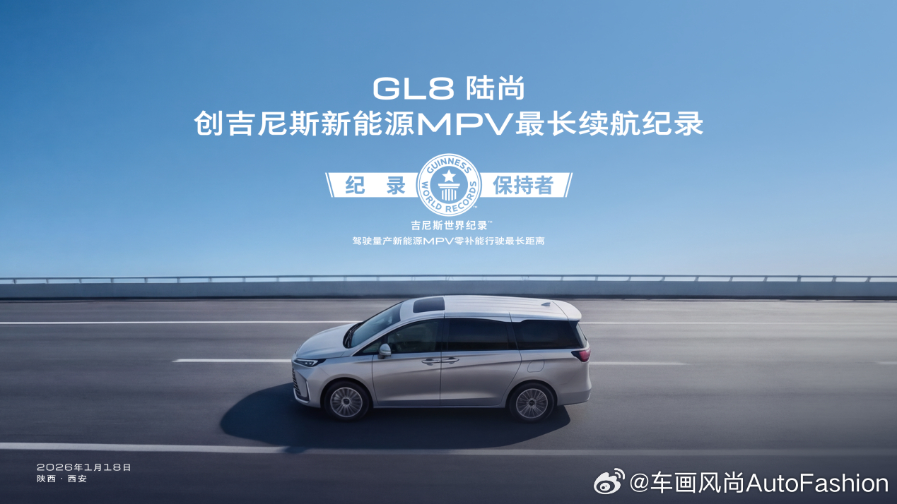 【GL8陆尚创吉尼斯新能源MPV最长续航纪录】日前,在吉尼斯世界纪录官方认证的高环续航测试中,别克GL8陆尚在5℃的低温环境中,以120km/h的法定最高时速,连续行驶超991km,油耗8.4L/100km,80-120km/h高速再加速用时5.11秒,刷新吉尼斯新能源MPV最长续航纪录,成为续航第一,能效第一、加速第一的新能源MPV。这是GL8陆尚继蝉联第三方续航与能效“双冠王”后,再获世界级权威认证,“新能源高速续航神车”称号实至名归!