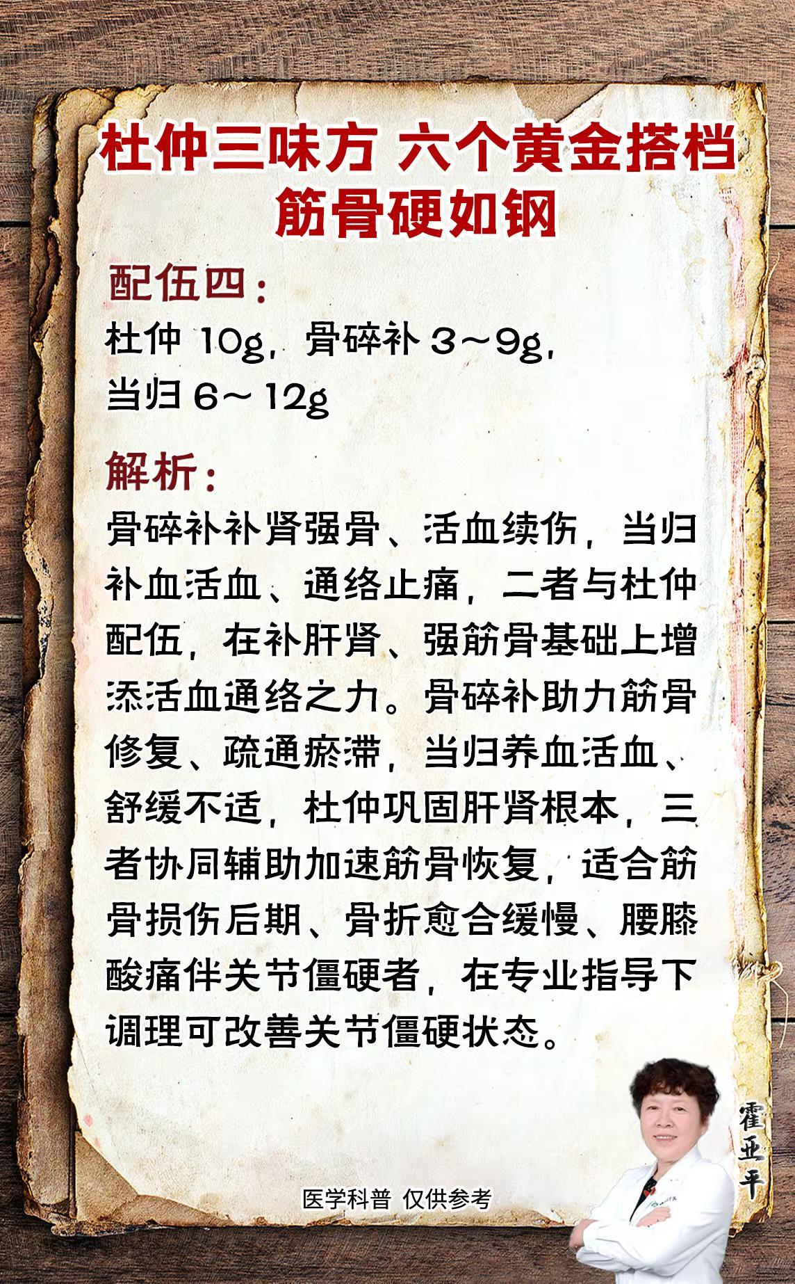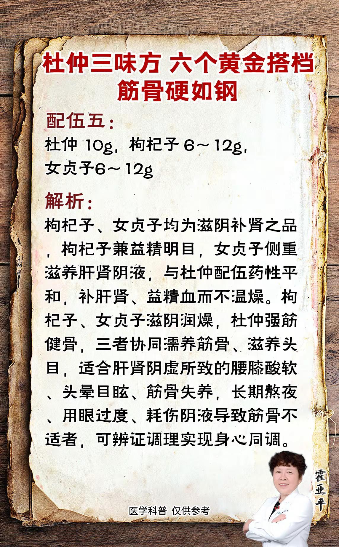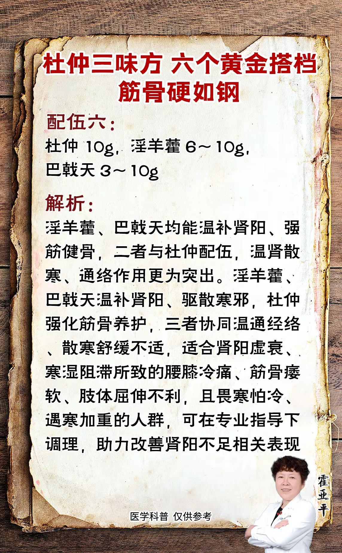 杜仲三味方 六个黄金搭档 男性朋友记好。杜仲 肝肾同补 脾肾两虚