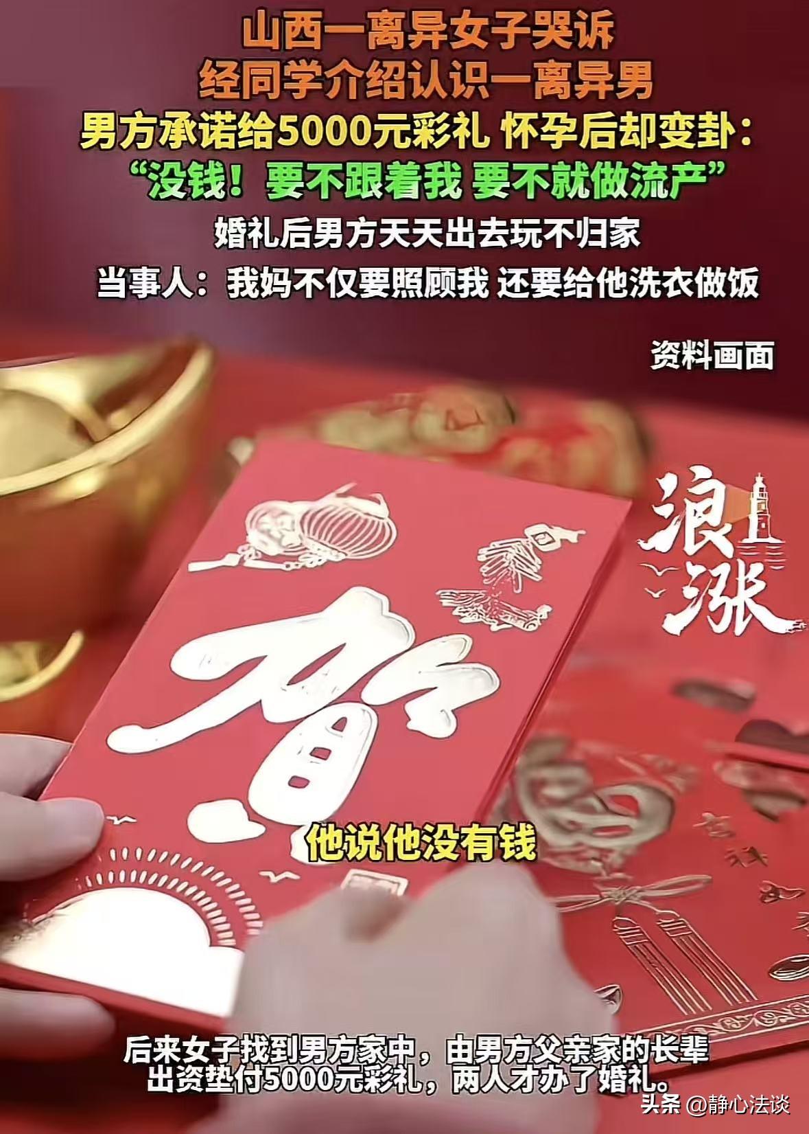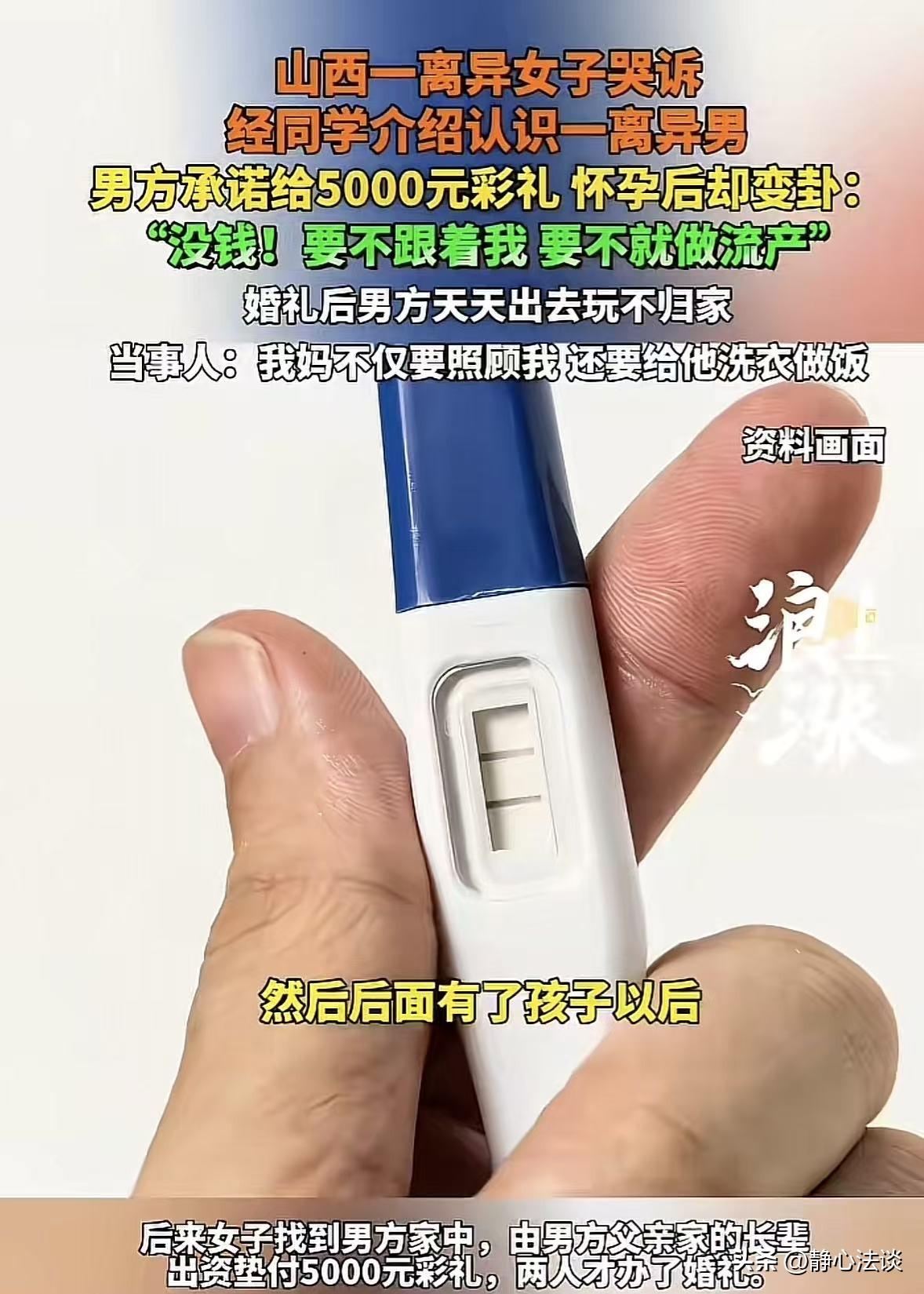 “看人不能只看表面!”山西,女子经同学介绍认识一男子,两人都是离异在找,第一次见面双方都很满意,女子提出要5000元彩礼,随后和男子同居,结果女子是易孕体质,没多久就怀孕了,男子得知女子怀孕后,像换了一个人,他告诉女子彩礼一分没有,自己选流掉孩子还是没名分跟着自己,二选一,女子想来想去选了后者,结果刚结完婚,男子就开始夜不归宿,成天无所事事,女子崩溃不已:我妈照顾我已经很累了,你啥也不干不说,还要我妈给你洗衣做饭! 女子离婚之后一直想找个踏实人好好过日子,后来通过同学介绍,认识了一个同样是离异的男子。 女子万万没想到,自己竟因为这一次选择让自己跳进了更深的火坑里! 当时两个人第一次见面,聊得还挺投机,彼此印象都不错,都觉得对方是能一起过日子的人。 当时女方也没多要,就按常规习俗,只要了5000元彩礼。 说实话,现在这个念叨,5000块钱的彩礼真的不算多,也就是个心意,图个吉利。 男子一口答应,两个人聊了没多久,就住到了一起,开始同居生活。 女子同局前就告诉男子自己是易孕体质,男子发誓如果真怀孕了,就生下来,肯定负责到底。 结果俩人刚在一起住没多久,女子真就怀孕了。 本来怀了孩子,应该是件喜事,两个人的关系也能更稳定。 可让她万万没想到的是,男子一听说她怀孕了,整个人直接变了一副嘴脸,跟之前判若两人。 男子得知女子怀孕后,直接摊牌了,他告诉女子:彩礼一分钱都没有,要么把孩子打掉,要么就没名没分跟着我,你自己选。 这话一说出来,女方当时心都凉了。 可一边是肚子里的小生命,一边是这样无情的男人。 她纠结了很久,最后还是舍不得孩子,咬牙选了后者。 没彩礼、没什么仪式,就这么跟着他,把婚结了,结婚钱还是管亲戚借的。 女子以为,自己退一步,能换来安稳日子,能让他看在孩子的份上好好过日子。 结果刚一结婚,男子彻底暴露本性。 整天游手好闲,无所事事,要么出去鬼混,要么夜不归宿,家里的事一点不管。 女方怀着孕,身体本来就不舒服,全程都是自己的妈妈在照顾。 本来老人照顾孕妇就已经够累了,可这个丈夫不仅不帮忙、不心疼,还要让丈母娘给他洗衣、做饭、伺候他。 女子彻底崩溃了,哭着大喊:我妈照顾我已经很累了,你啥也不干不说,还要我妈给你洗衣做饭! 她当初只想找个踏实人,5000块彩礼都没多要,怀了孩子委屈求全,本以为是二婚的归宿,没想到跳进了更深的火坑。 《民法典》第1059条:夫妻有相互扶养的义务。需要扶养的一方,在另一方不履行扶养义务时,有要求其给付扶养费的权利。 女方怀孕、行动不便,属于需要扶养的情形,丈夫必须在生活、经济上照料扶助。 丈夫夜不归宿、不养家、不照顾孕妇,属于不履行法定扶养义务。 女方可以起诉要求男方支付扶养费,承担孕期检查、营养、生活等必要开支。 不得不说,真的挺替这个女子觉得不值,二婚本来就更该谨慎。 不是说不能相信人,而是不能光听甜言蜜语,更不能因为心软、就把自己的底线一降再降。 你一开始就把姿态放得那么低,只想要5000块钱的心意,人家反而不把你当回事。 男人好不好,不在谈恋爱时说得多好听,而在你最需要他的时候,他能不能扛事、能不能心疼你。 女人这辈子,真的别委屈自己去讨好任何人,你越退让,别人越得寸进尺。 一定要记住,看人别光看表面,真心永远藏在行动里,不是藏在嘴巴上。 @静心法谈 学法辨是非,慬法不吃亏。