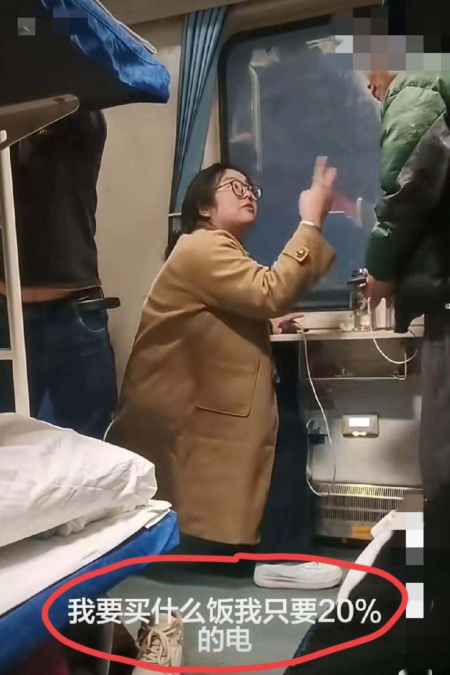 火车卧铺车厢充电引发的争吵。 绿衣大妈充了十几分钟被拔,眼镜女子说大妈手机里已经有60%的电,自己只有20%。然后大妈把她的充电器拔了,眼镜女子就高喊“报警,有人抢劫东西”,之后,列车上的工作人员就过来了,对双方好一顿安抚,最后给大妈又重新找一个充电的地方…… 网友锐评:现在的手机,好像20%的电可以用很长时间了吧,你凭什么把人家充了没多久的手机拔下来,自作主张的去充自己的手机呢? 评论区诸位看官,这个事情上,大家觉得是谁的问题?