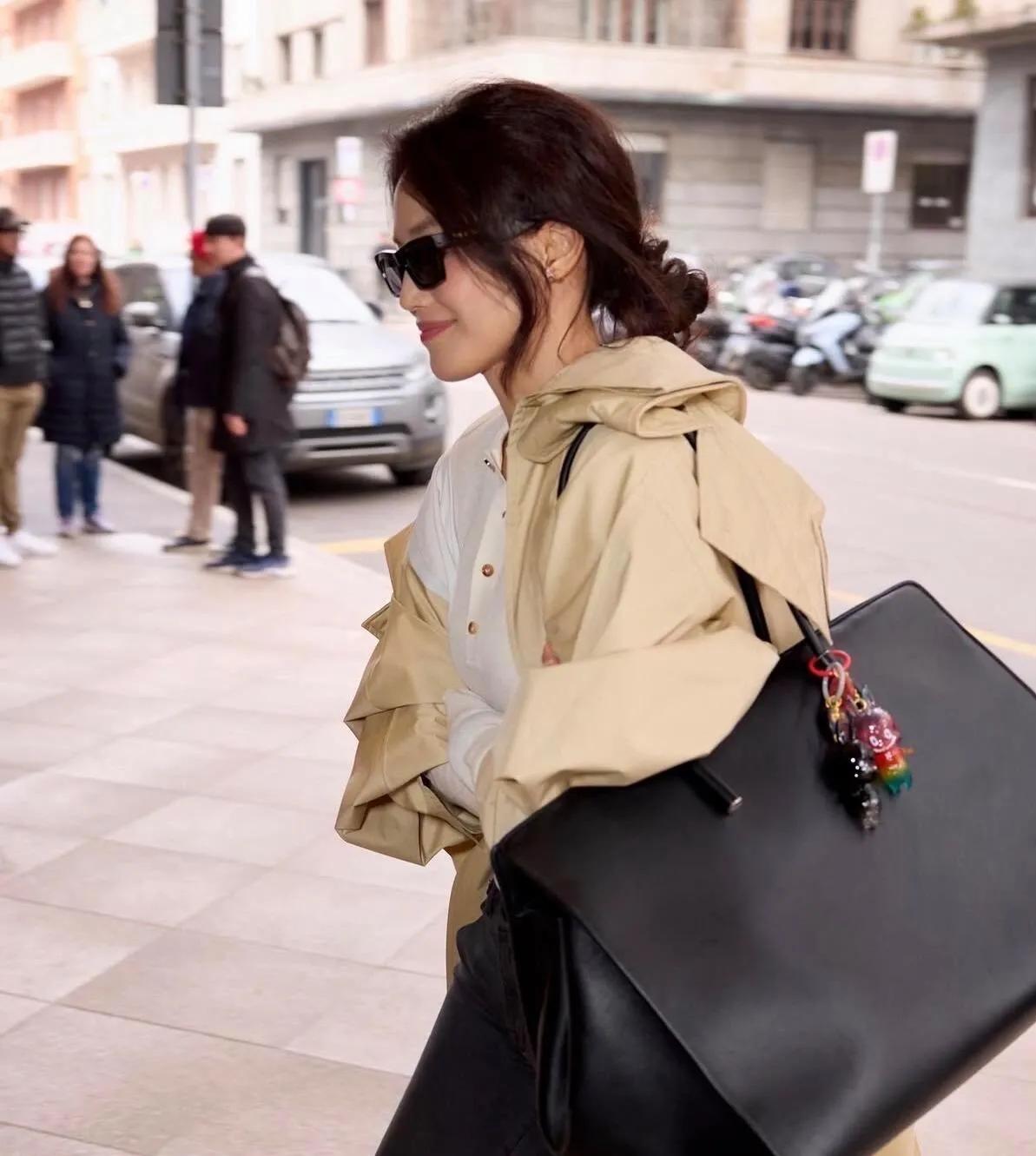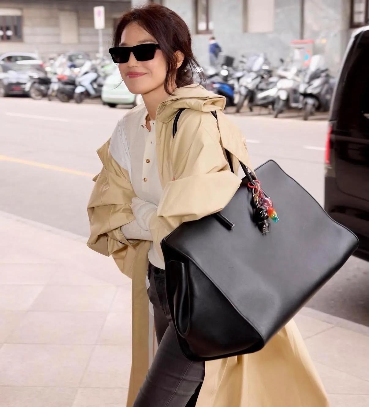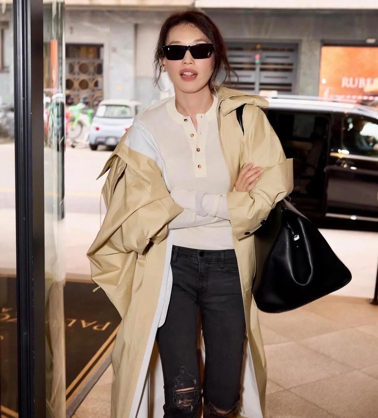 跟着舒淇学早春穿搭,赢麻了!✅ 她这身“内紧外松”公式太适合借鉴:卡其色廓形风衣+修身针织,下装搭配破洞牛仔裤,再踩一双厚底鞋,显高显瘦全拿捏。超大黑包不仅是配饰,更是整体造型的灵魂亮点,帅气时髦,照搬就是行走的画报! 舒淇穿搭同款 早春穿搭灵感 老钱风怎么穿 显高显瘦穿搭