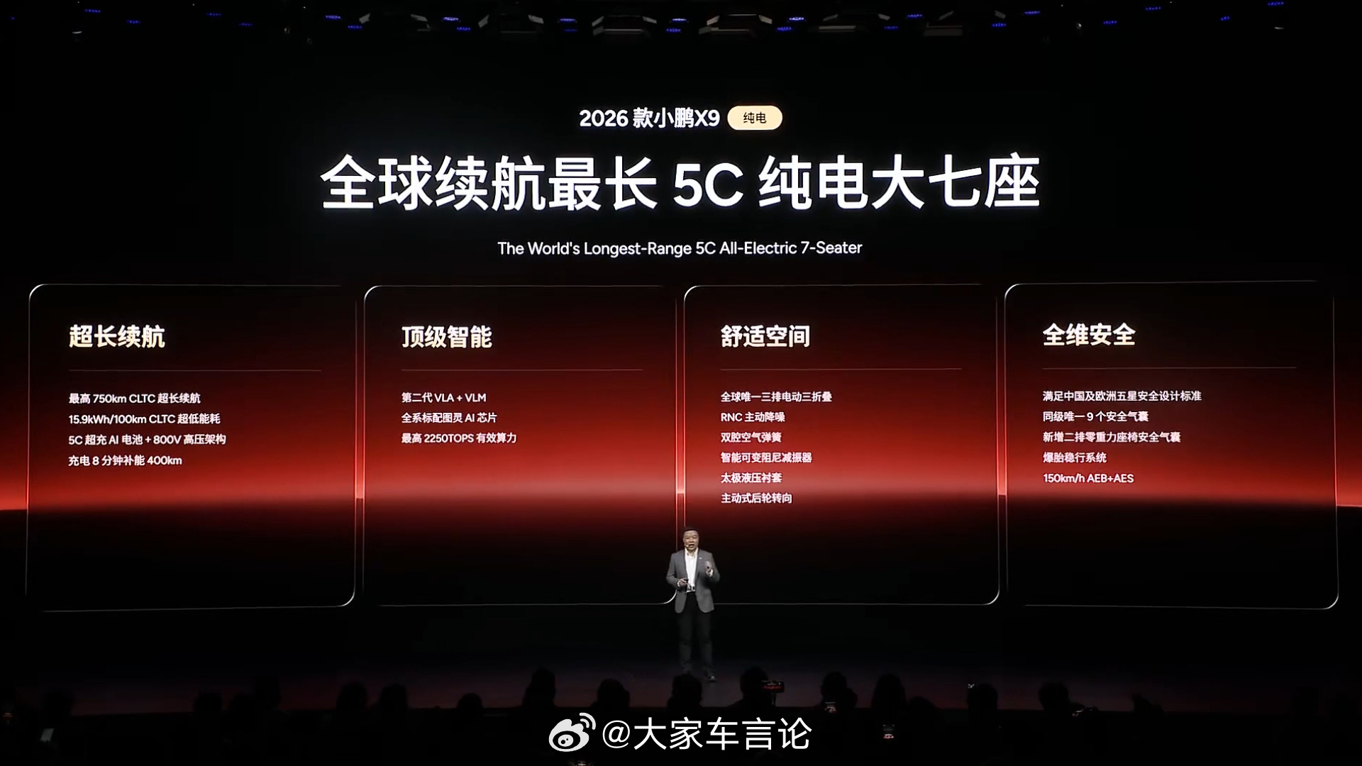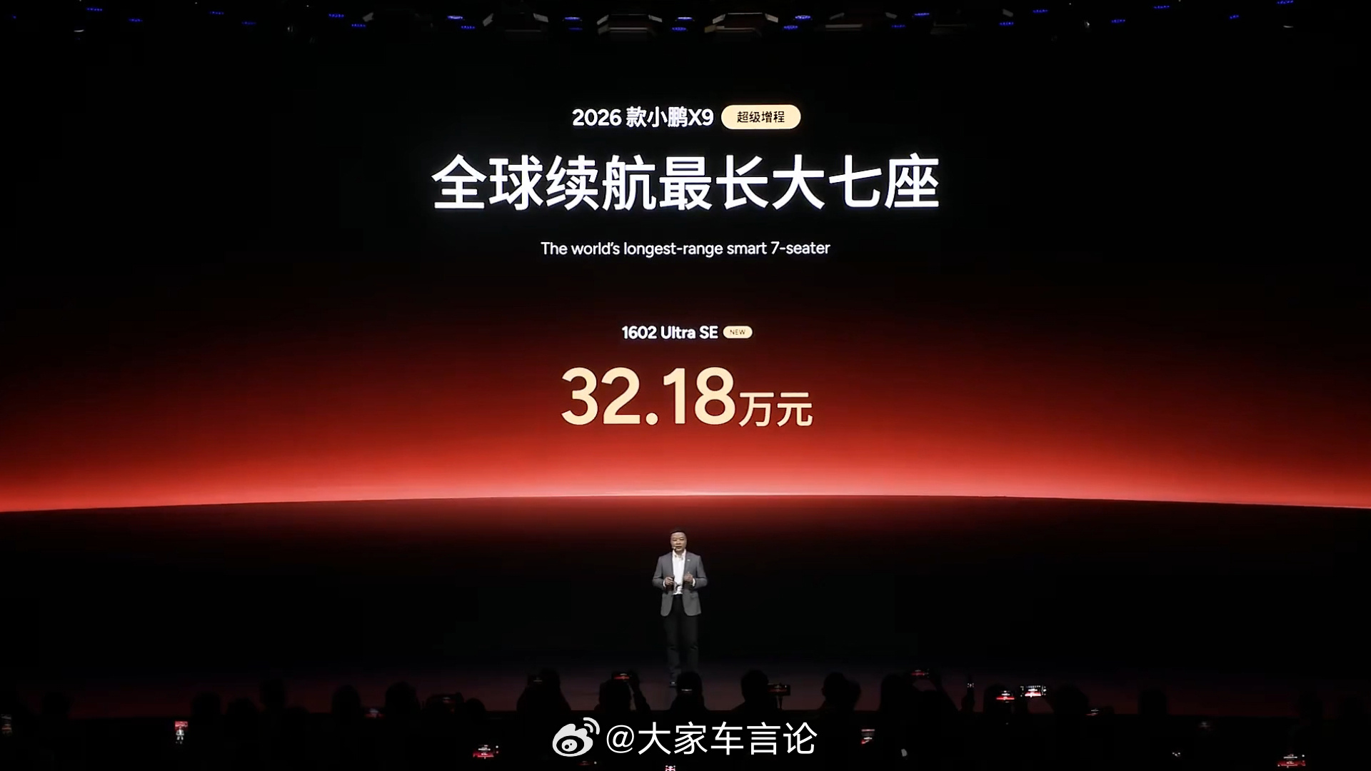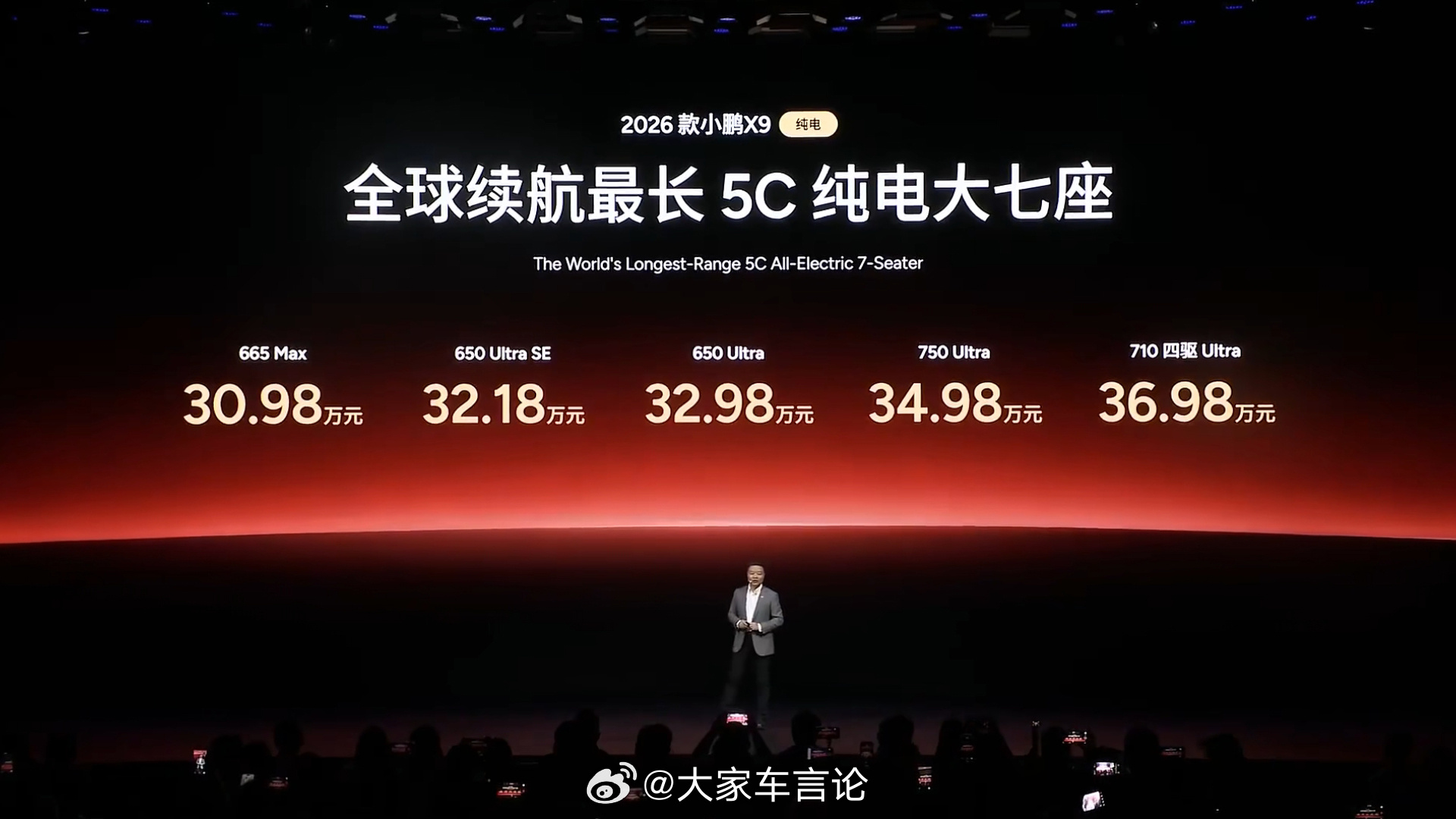 26款小鹏X9纯电版本售价公布 30.98万起,首搭载第二代VLA,两种动力同一旗舰标准。