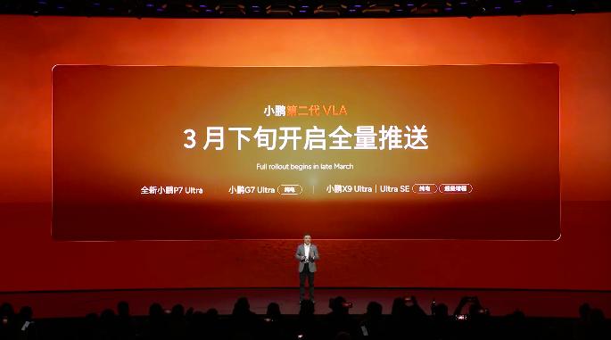 第二代VLA敲定2026重要里程碑 首先,小鹏要做中国最领先智驾系统 ✅ 能力跨代提升:平均接管里程提 25 倍、安全接管里程提 50 倍,模型参数 220 亿媲美 FSD ✅ 技术深度融合:年内实现 VLA+VLM 驾舱合流,完成 Max 车型技术蒸馏 ✅ 商业加速落地:基于第二代 VLA 的 Robotaxi 年内正式运营 ✅ 迈向超级智能体:车具备连续理解与主动决策能力,打破智能代步工具局限 3月下旬,P7,G7,X9三款车会开启第二代VLA推送 4月,全部Ultra车型都会上车【来自懂车帝车友圈】