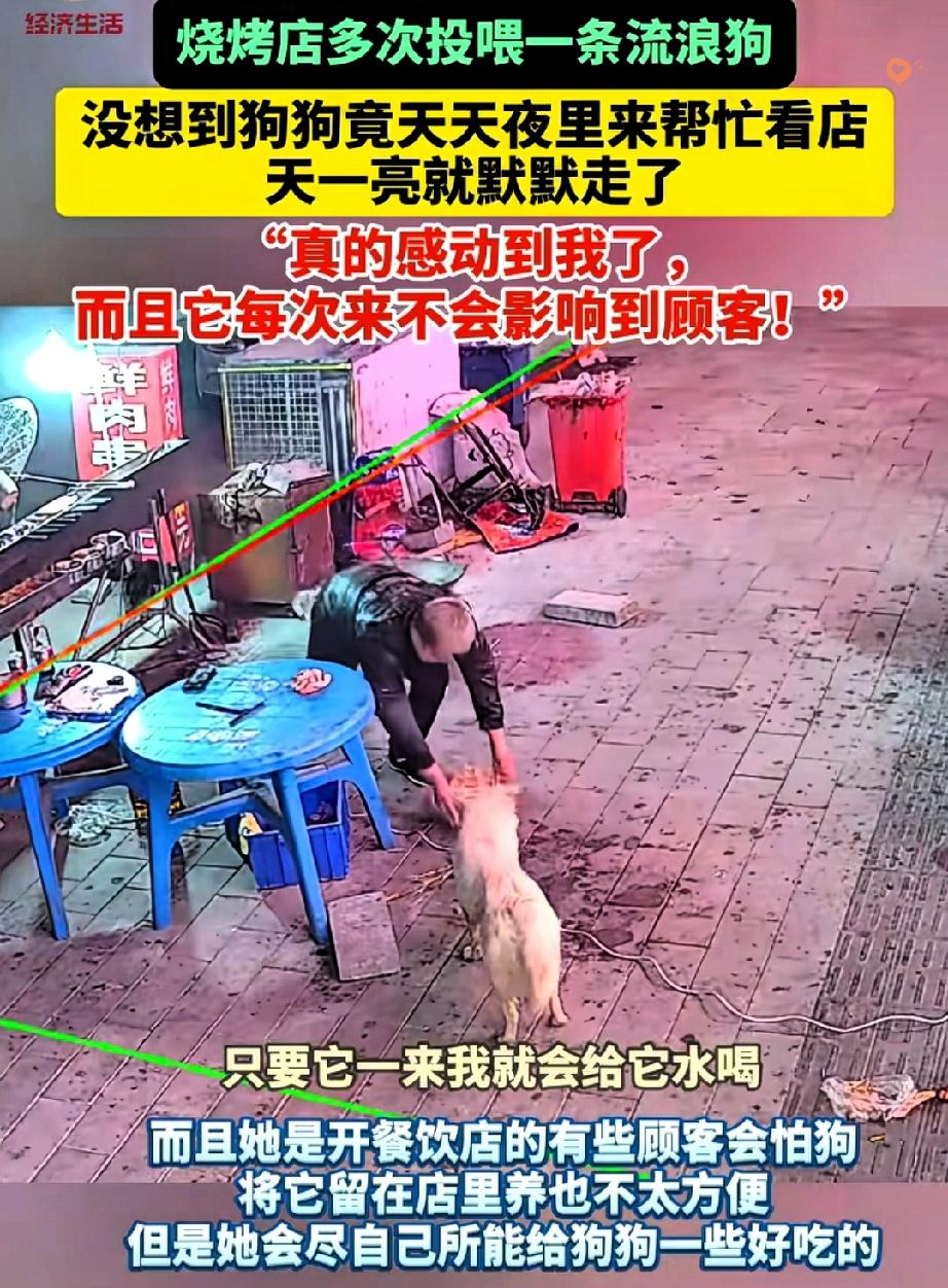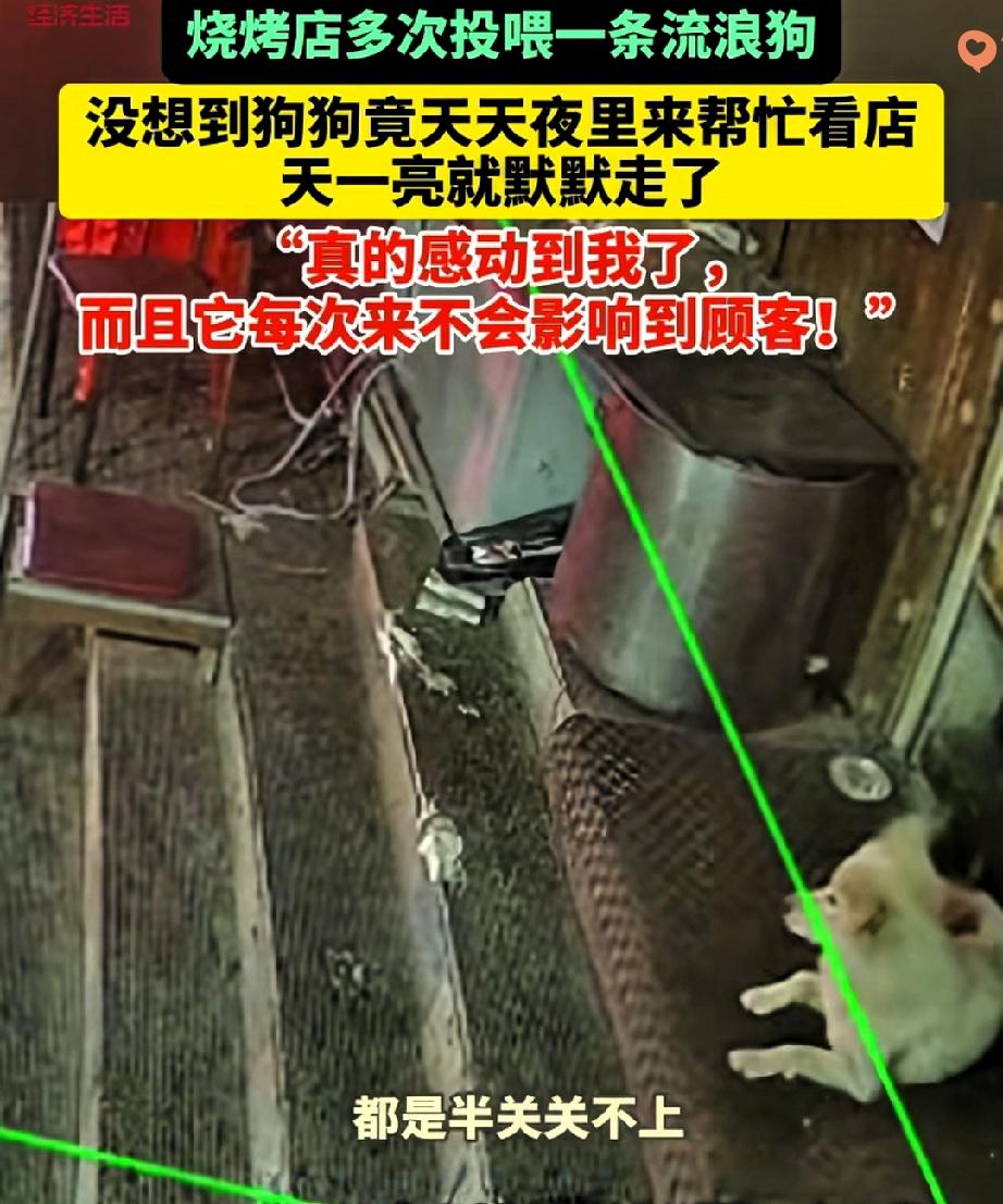 谁说流浪狗喂不熟? 长春这只狗狗的报恩方式,看完直接破防! 烧烤店老板娘心善,半年来天天给流浪狗留吃食,可这狗狗从不多黏人,大家都打趣说它“白眼狼”。 直到店门锁坏了,老板娘调监控想看看有没有异常,结果越看越泪目。 原来每天收摊后,狗狗都会默默趴在店门口守一整晚,有人靠近就警惕驱赶,还会用鼻子把虚掩的门拱严实。 天亮它就悄悄离开,不吵不闹,用最笨拙的方式守护着给它温暖的人。 其实动物的感恩从不含糊,你给它一口饭的善意,它会记在心里,用一生去偿还。 比起刻意的讨好,这种沉默的守护才更动人,这大概就是善良最美好的双向奔赴。 你有没有被流浪动物的举动温暖过? 如果遇到流浪动物,你会愿意伸出援手吗?